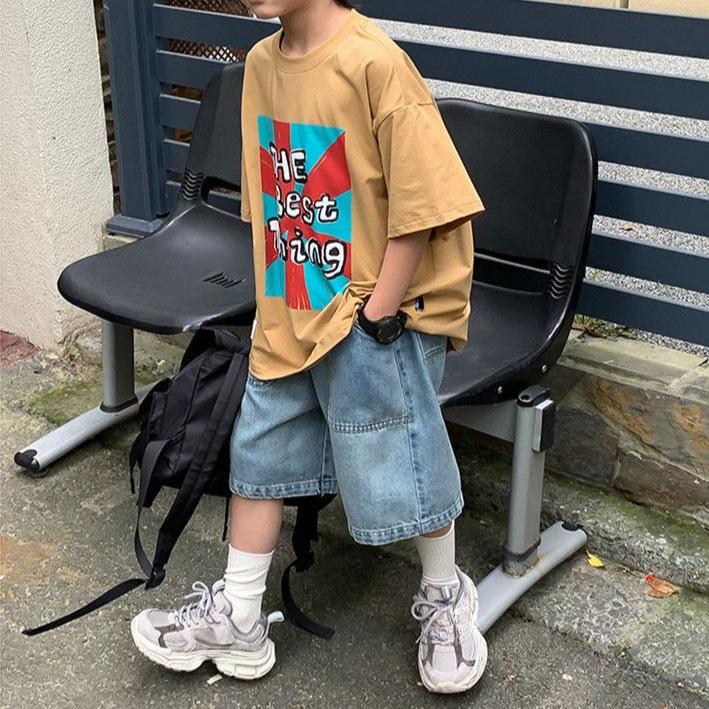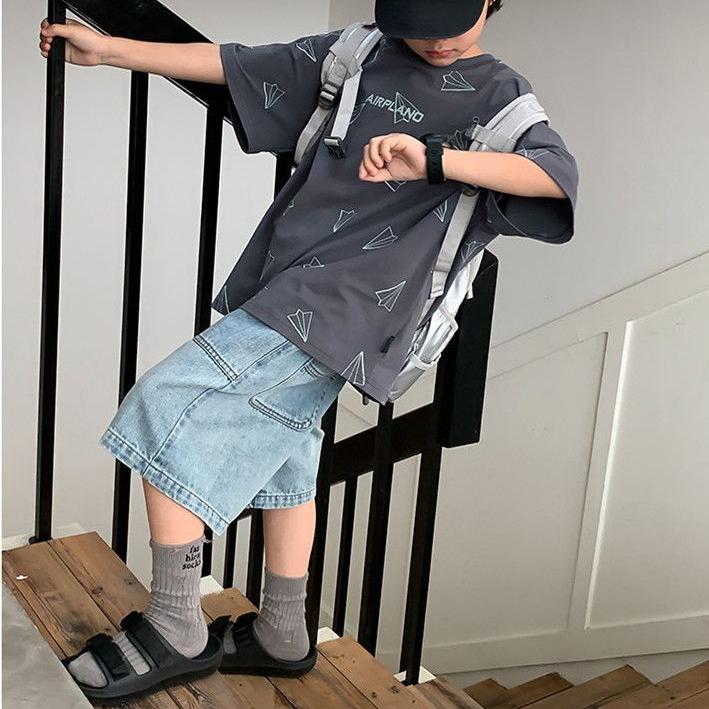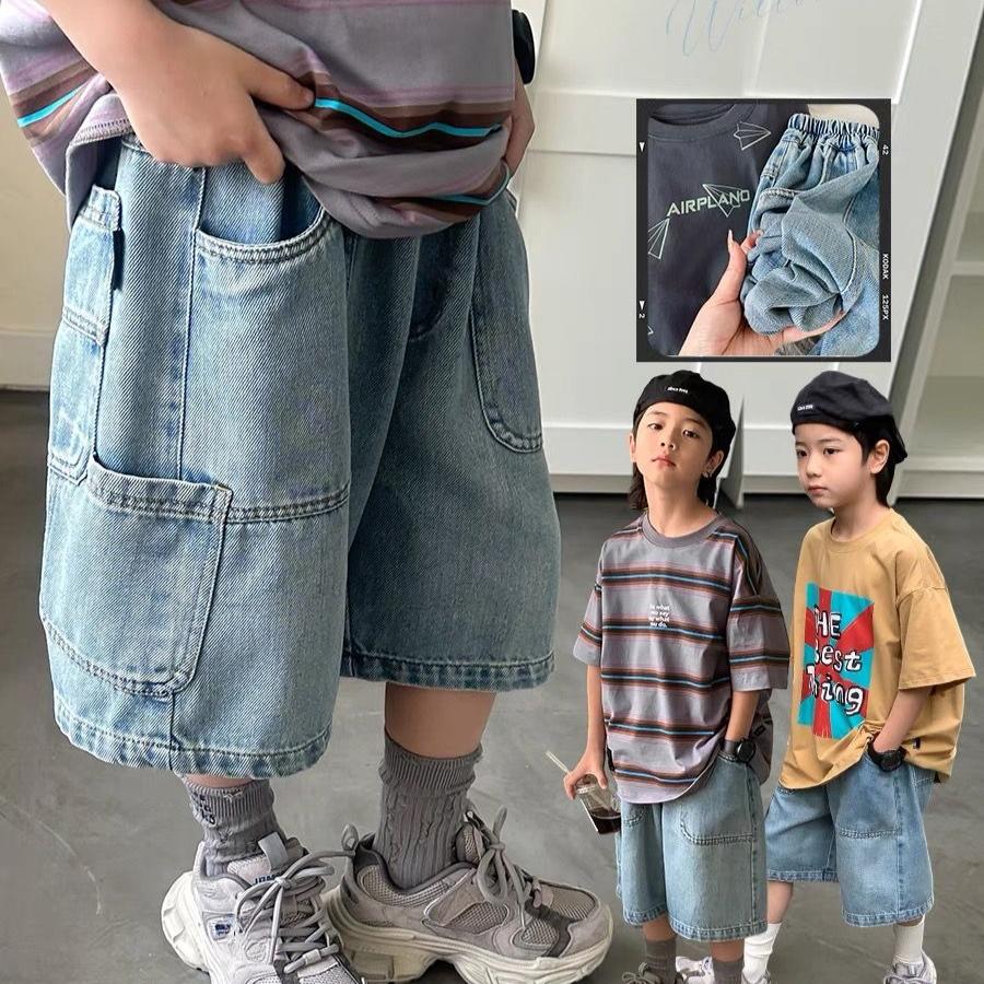 Брюки Детские джинсовые шорты Летние тонкие брюки для мальчиков Свободные повседневные брюки длиной пять четвертей Тренд для мальчиков
