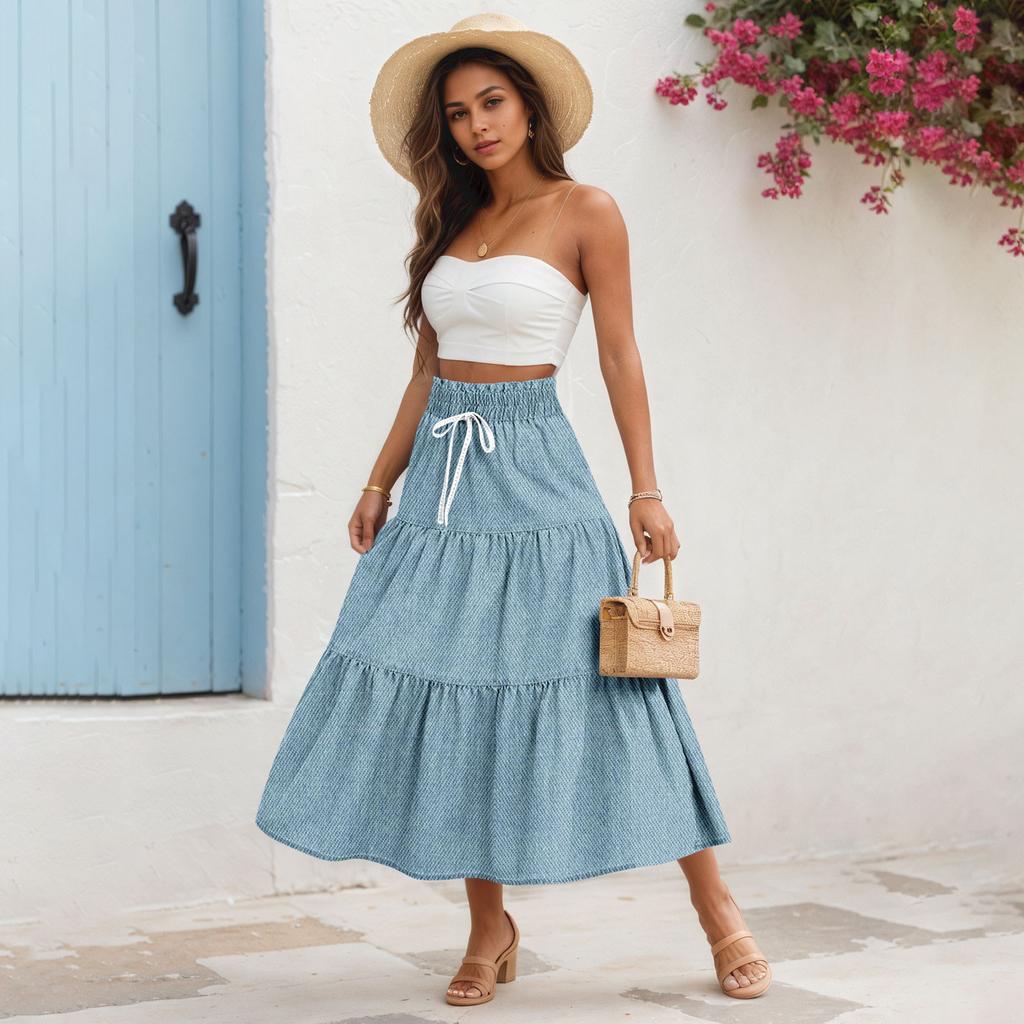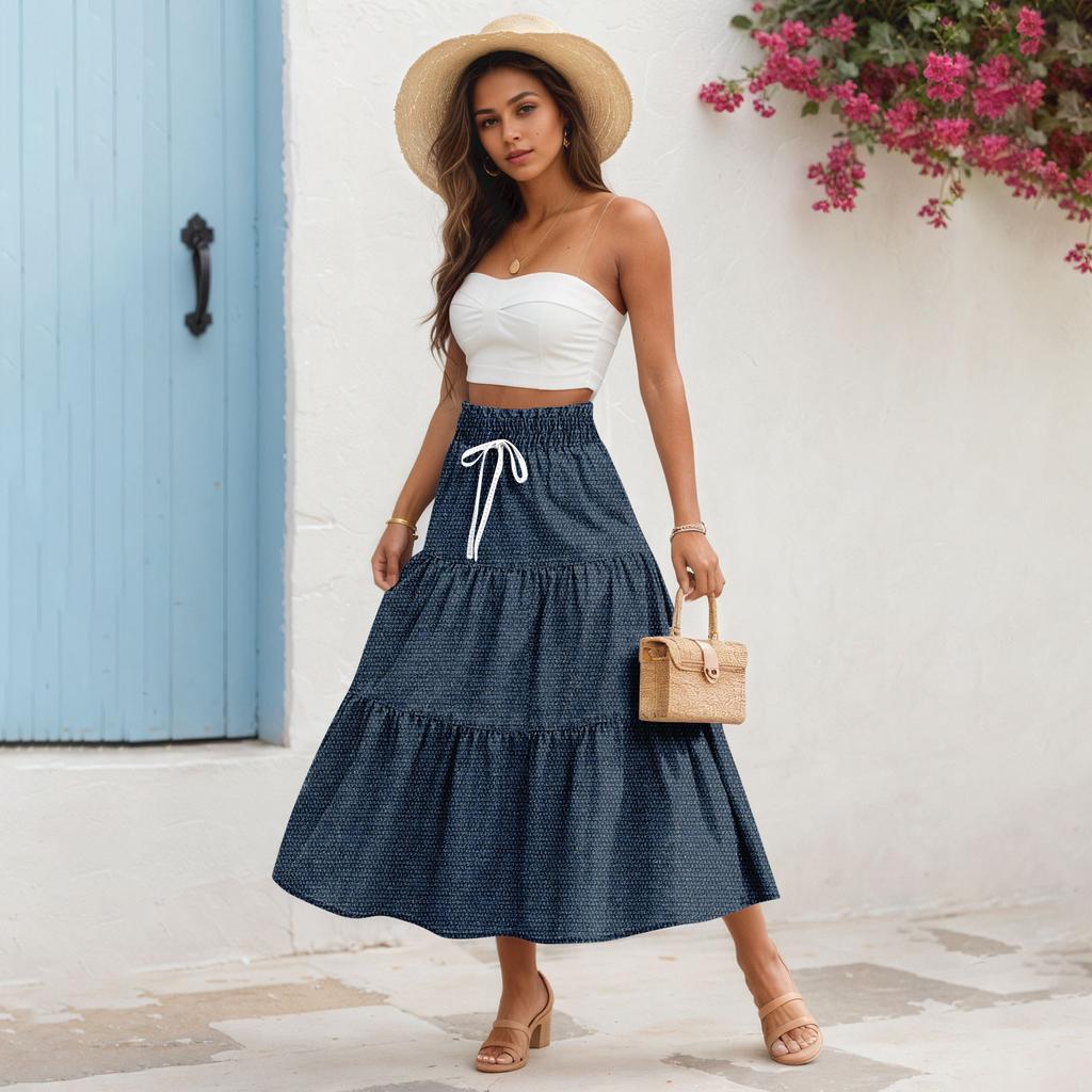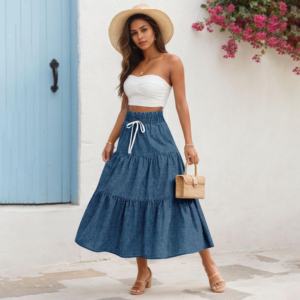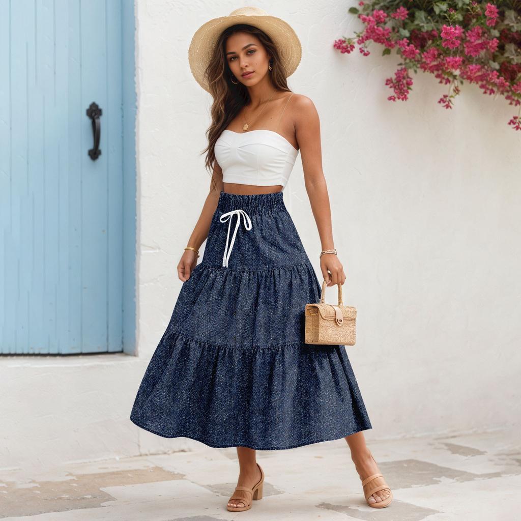 Женская весенняя повседневная длинная юбка с оборками, однотонная юбка, ретро-юбка в складку