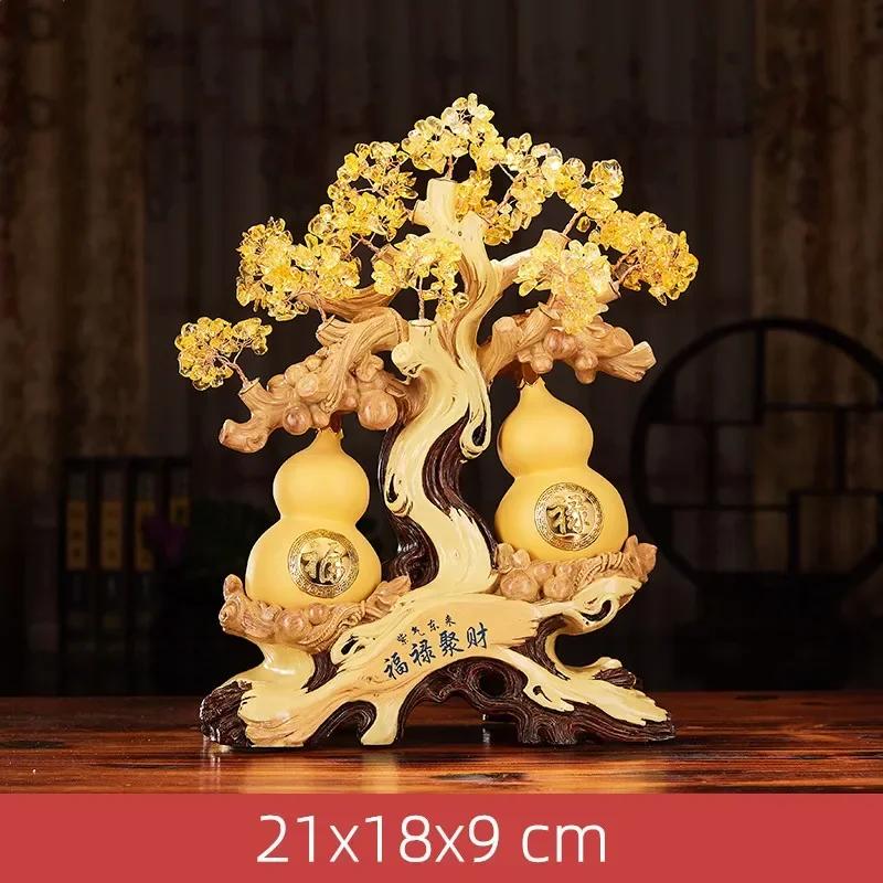 Китайский стиль Дерево удачи Фэн-шуй тыква Статуэтка Украшения Скульптуры из смолы Поделки Украшения для дома Свадебные подарки