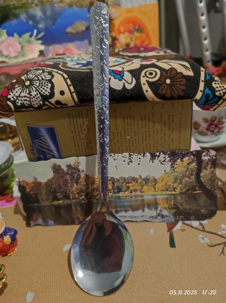 Замечательная обеденная 🥄 ложка! Твердая, красивая, блестит! Приятно держать в руке - да и во рту помещается! Рекомендую к покупке 🎉!