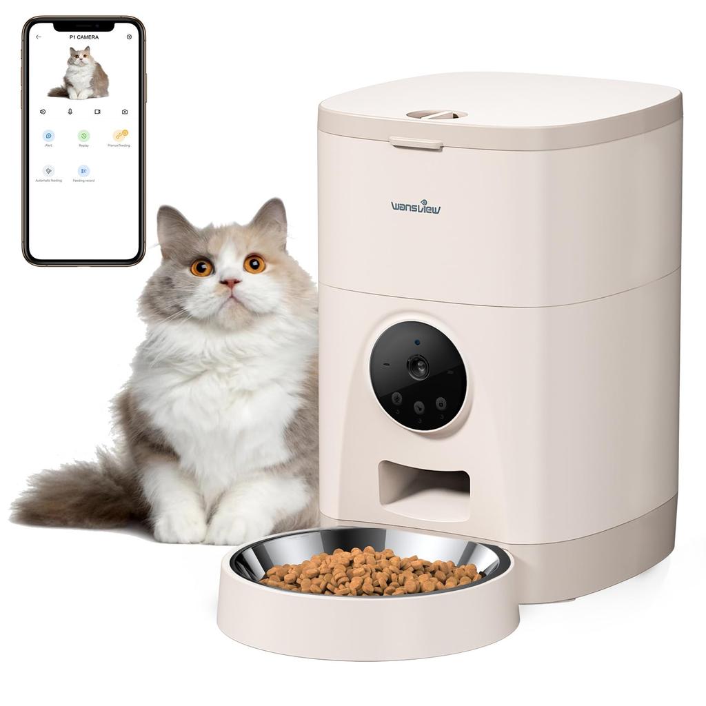 [Большая вместимость, автоматическая подача] Большая вместимость 4 л вмещает большинство сухих кормов для кошек и собак. Используя приложение Wansview Cloud на вашем смартфоне, вы можете автоматически кормить своего питомца 1-5 раз в день.. Вы можете установить от 1 до 10 порций на кормление, или вы можете кормить вручную.. Легко регулируйте количество корма и время кормления вашего питомца, а приложение ведет учет кормлений.. Приложение уведомит вас, когда еды будет мало. Вы можете контролировать рацион своего питомца даже в напряженные дни. (Этот продукт поддерживает только Wi-Fi 2,4 ГГц.)