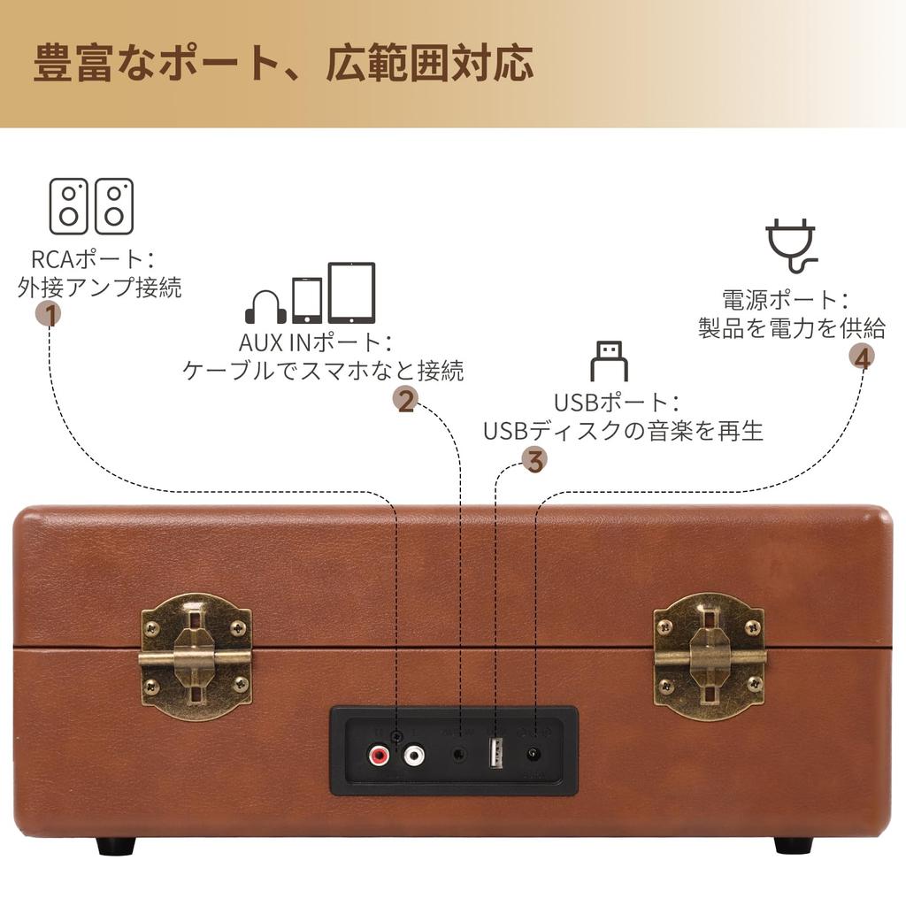 [Портативный/Лучший подарок] Завернутый в мягкую кожу и оснащенный ручкой, его удобно носить.. Переключатель автостопа позволяет автоматически остановить запись по ее завершении.. В комплект также входит инструкция на японском языке, поэтому мы рекомендуем новичкам внимательно ее прочитать перед использованием этого продукта.. аксессуары: Кабель RCA*1/адаптер питания*1/руководство пользователя*1. Это тонкая работа, а также отличный подарок для ваших друзей и родителей.