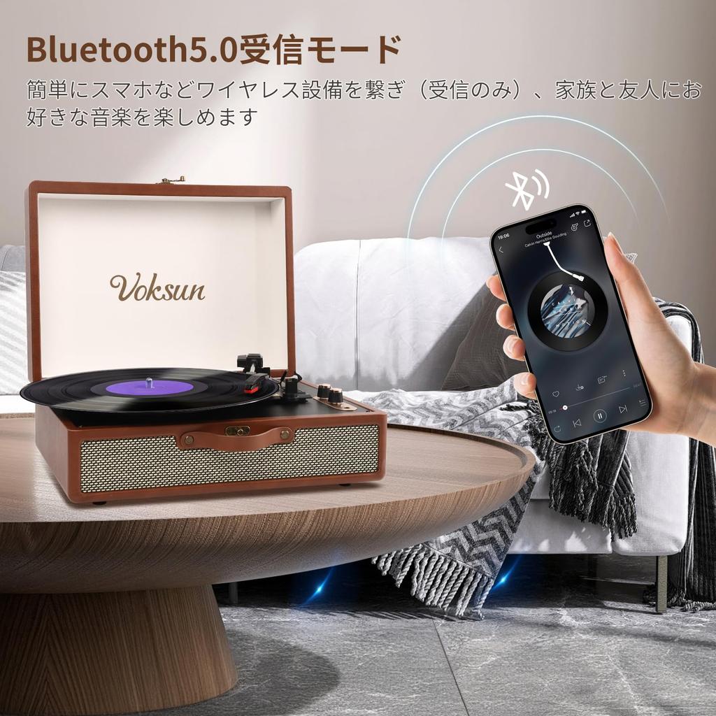 [Выбор скорости вращения/Функция BT] Вы можете выбрать скорость воспроизведения проигрывателя в соответствии с жанром музыки и вашими предпочтениями. Совместимо с вращениями 33-1/3, 45 и 78. Функция Bluetooth позволяет легко воспроизводить музыку со смартфона. (этот продукт является Bluetooth-приемником, поэтому он может воспроизводить музыку только с таких устройств, как смартфоны и планшеты, и несовместим с беспроводными наушниками или BT-колонками).