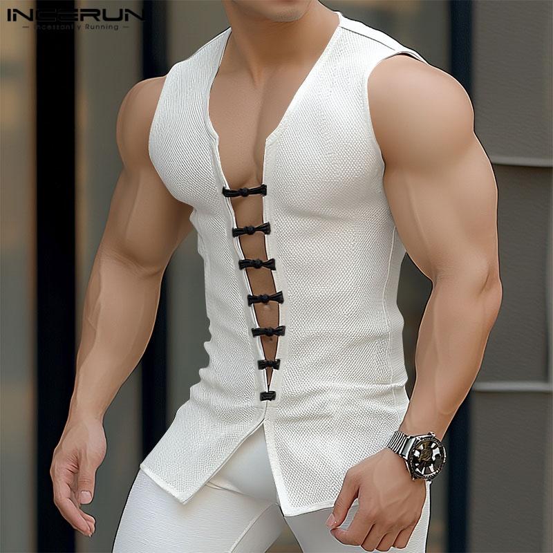 INCERUN Мужские летние повседневные майки без рукавов с V-образным вырезом и бандажом