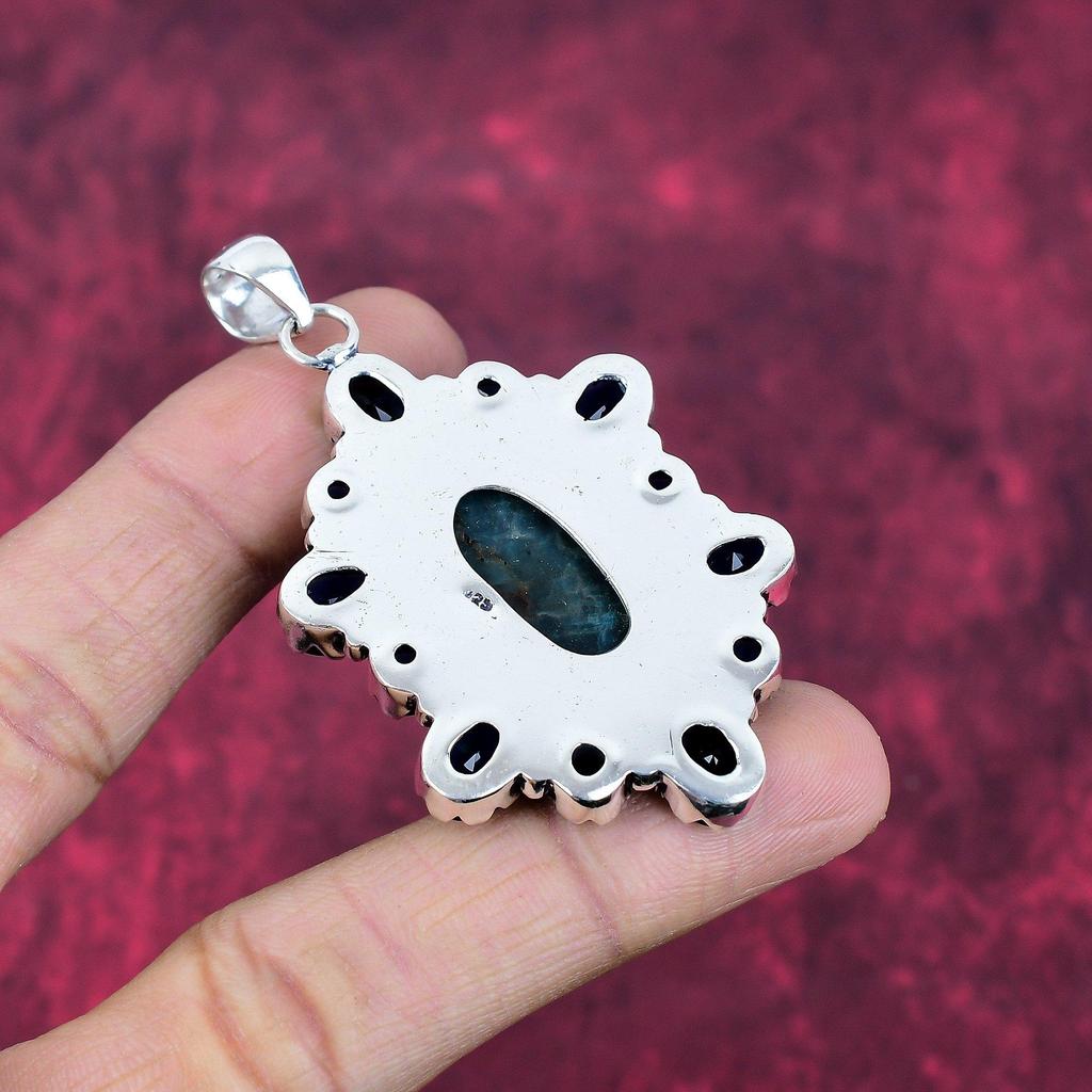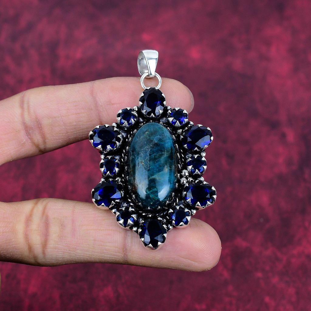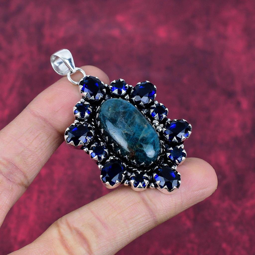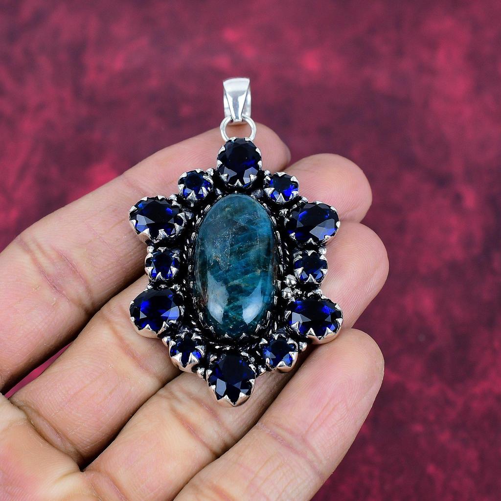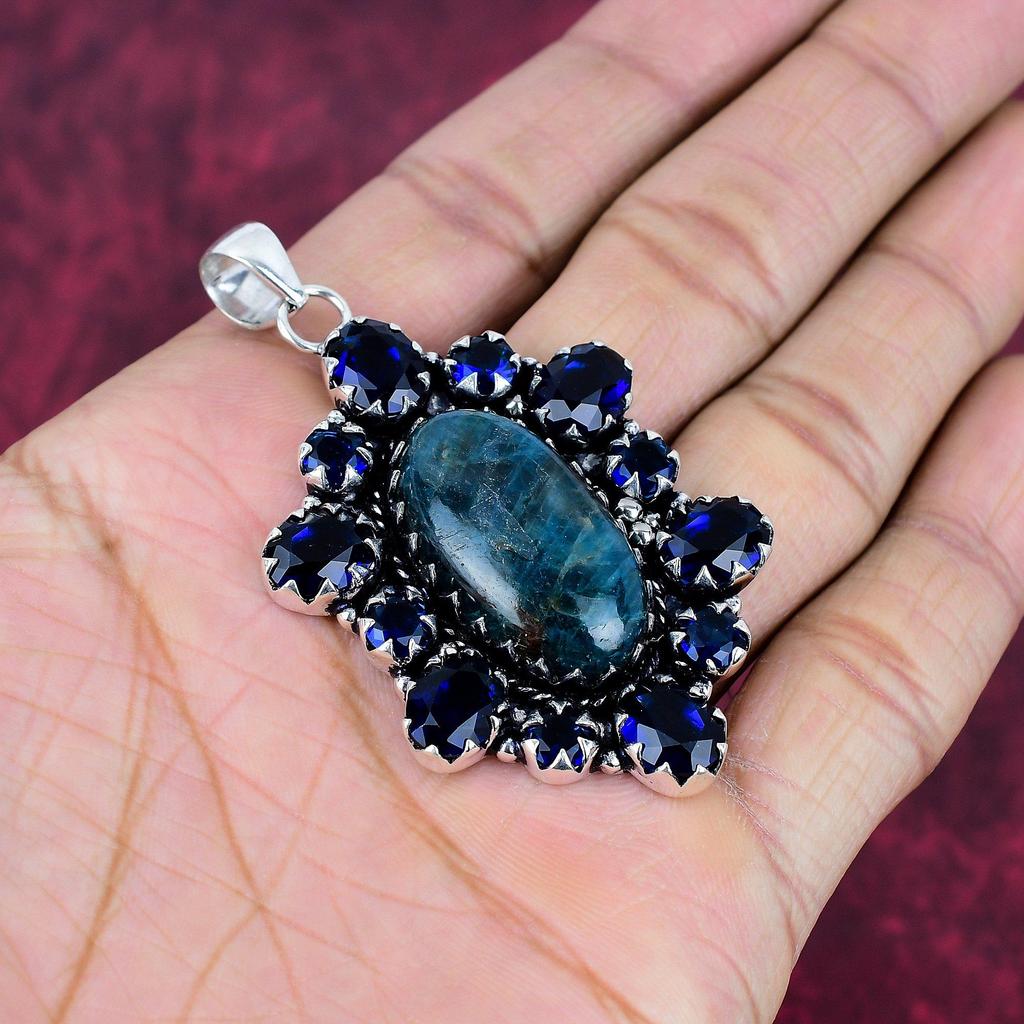 Неоновый апатит, сапфировый кулон, 925 пробы сплошной серебряный кулон, ювелирные изделия ручной работы с драгоценными камнями, подарки для жены, абсолютно новый кулон