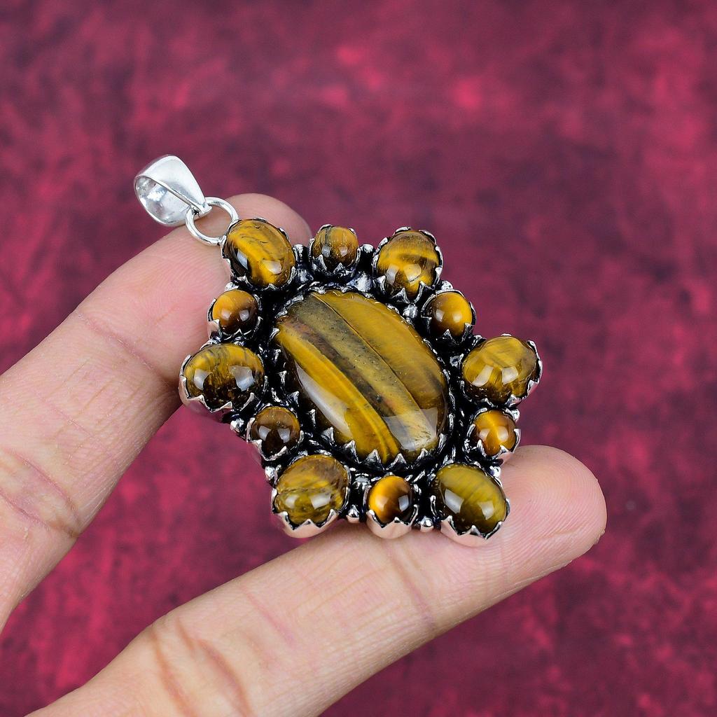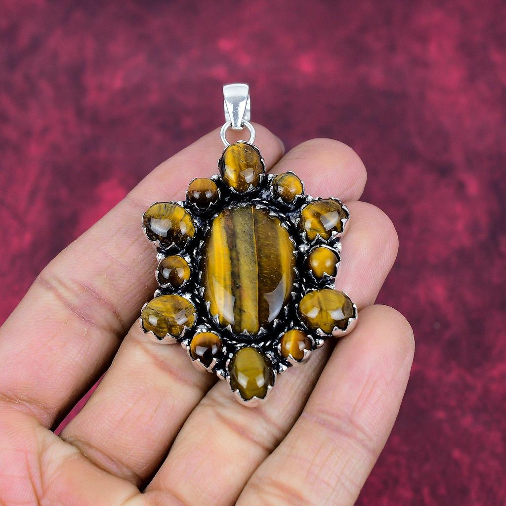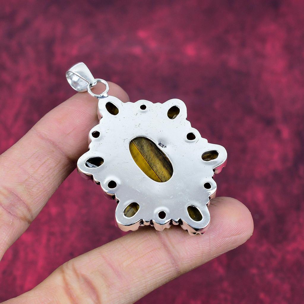 Твердый кулон из стерлингового серебра 925 пробы с тигровым глазом, кулон из драгоценного камня ручной работы, подарок для мамы, антикварные ювелирные изделия