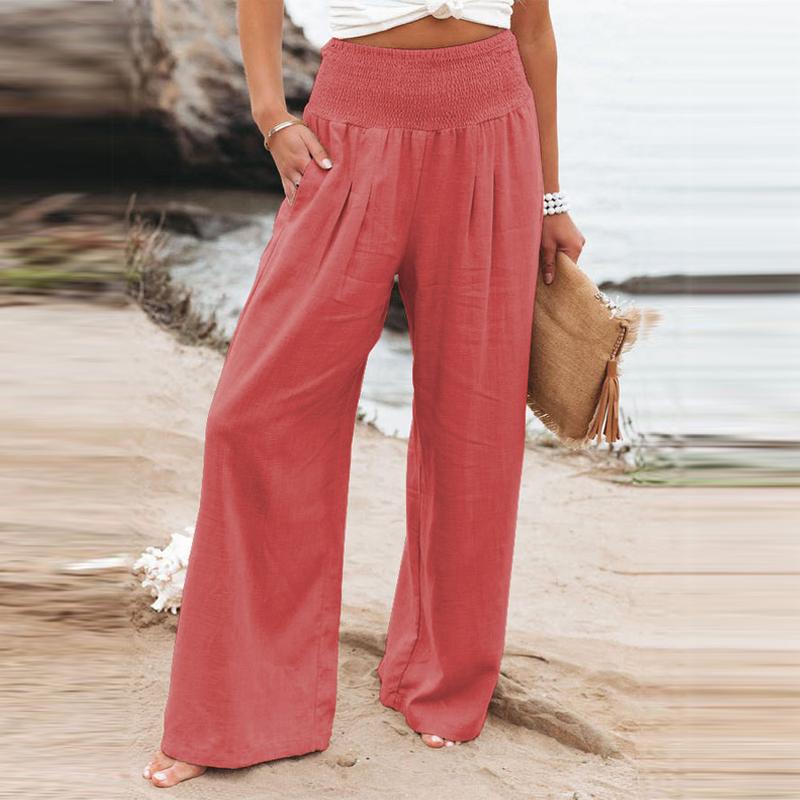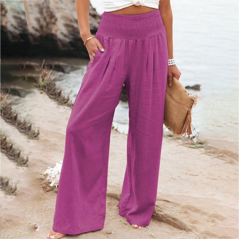 Женские свободные широкие брюки из хлопка и льна, весенне-летние офисные женские повседневные однотонные брюки для бега с эластичной резинкой на талии, брюки большого размера