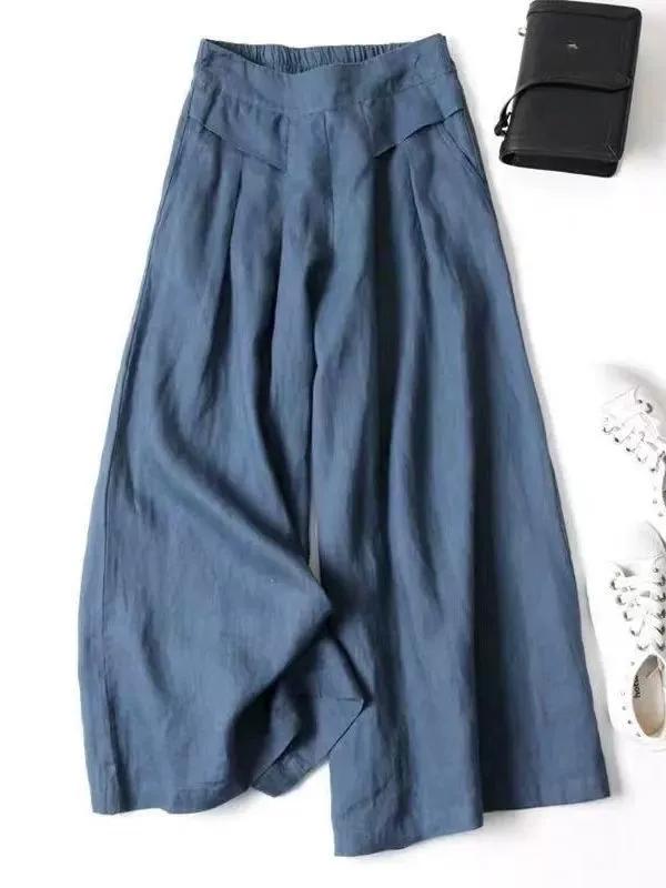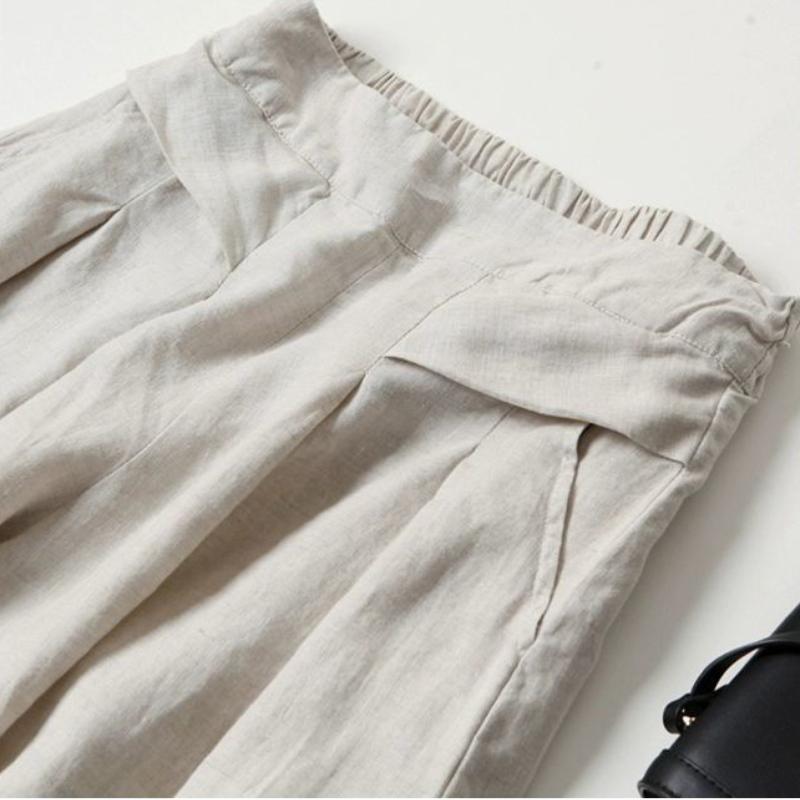 Широкие брюки из хлопка и льна для женщин на весну и лето, укороченные брюки из тонкого льна с полуэластичной талией