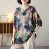 Harajuku Ретро женская летняя и осенняя модная одежда с винтажным цветочным принтом и круглым вырезом, вязаные свитера с короткими рукавами, женские свободные пуловеры