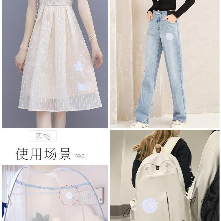 Белая наклейка с цветком на ткань, самоклеящаяся одежда без швов, дырок и следов, субсидия на ремонт брюк с москитной сеткой, наклейка с вышивкой