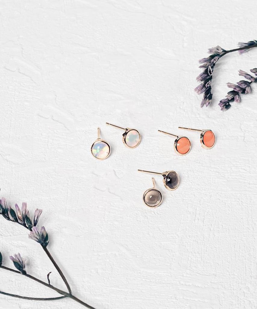 Серьги из желтого золота K10 с дымчатым кварцем L&Co 43-7904