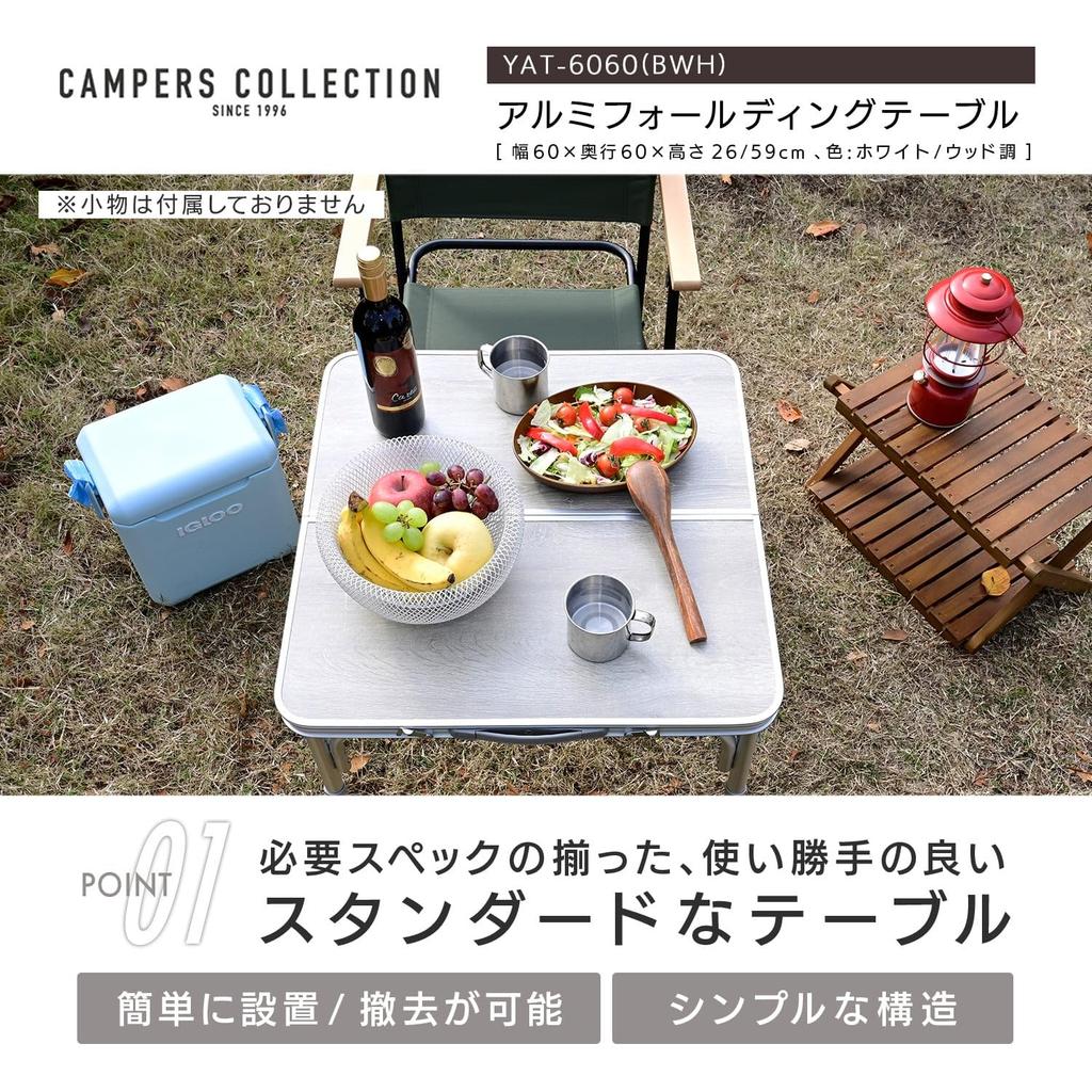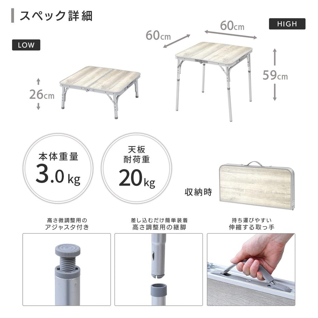 Коллекция Outdoor Регулировка высоты от жары и воды Ширина 60 x Глубина 60 x Высота Белая текстура дерева [Campers Yamazen] Стол, Кемпинг, Отдых на природе,