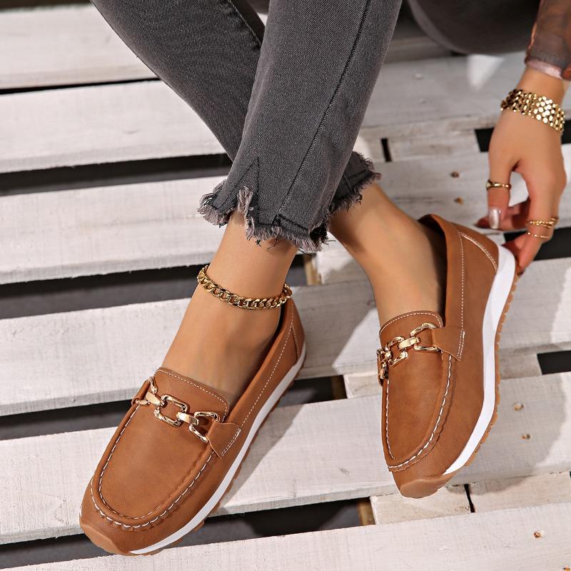 2025 Новые повседневные мокасины с металлической цепочкой и плоской подошвой