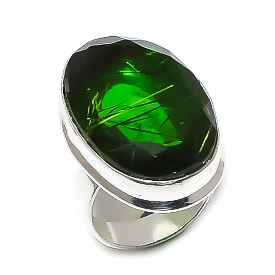 Кольцо из серебра 925 пробы с натуральным хромдиопсидом, размер 8, n9J39