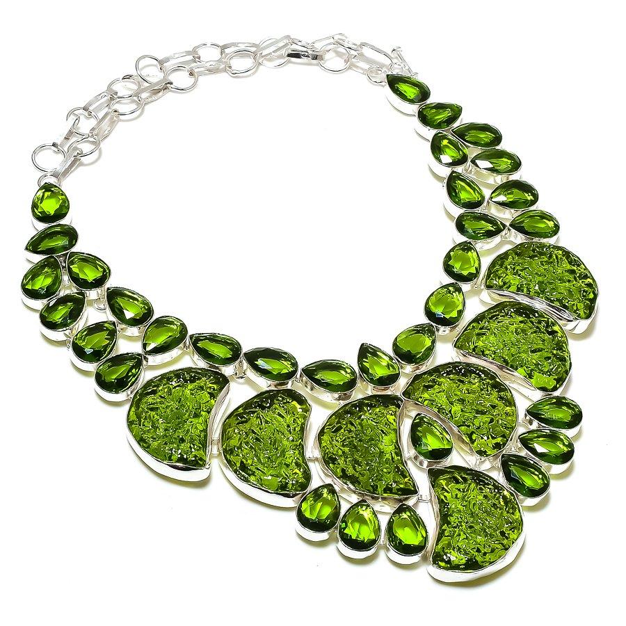 Натуральный молдавит, перидот 925 стерлинговое серебро ювелирное ожерелье 18" S4D06