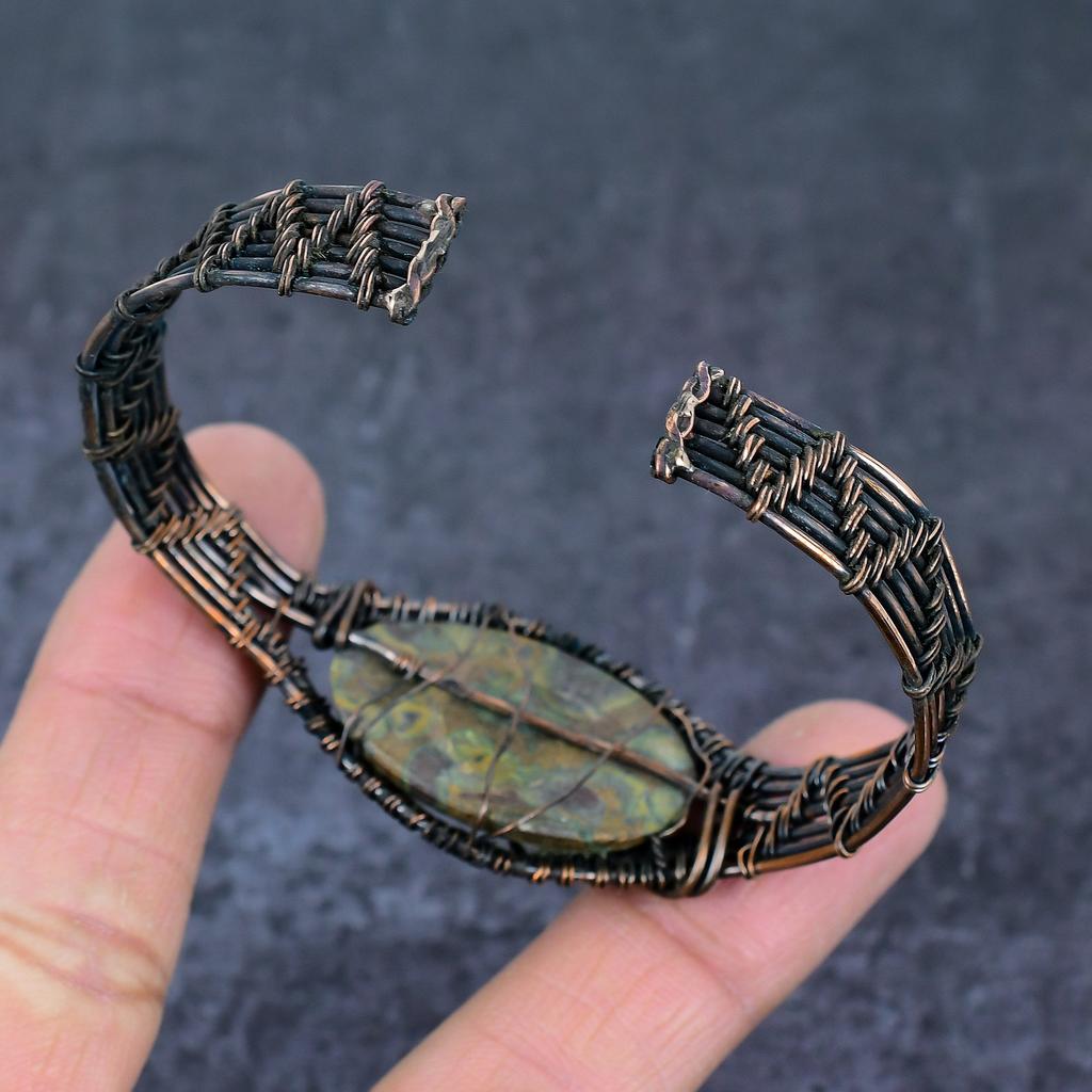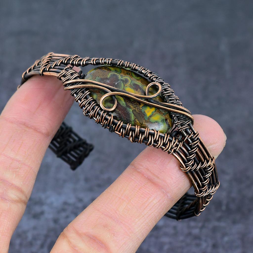 Натуральный камень Яшма Фруктовая Медь Проволочная Обмотка Манжета Браслет Регулируемый c3c33