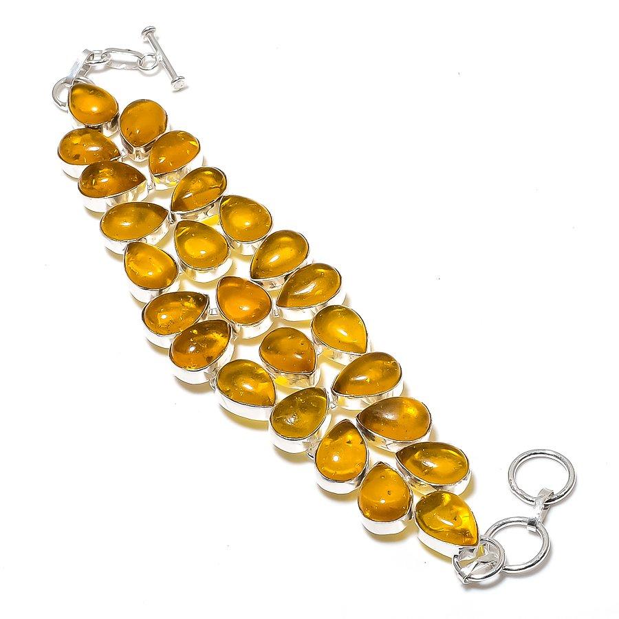 Браслет ручной работы из серебра 925 пробы с балтийским янтарем и драгоценными камнями 7-8 дюймов q2R58