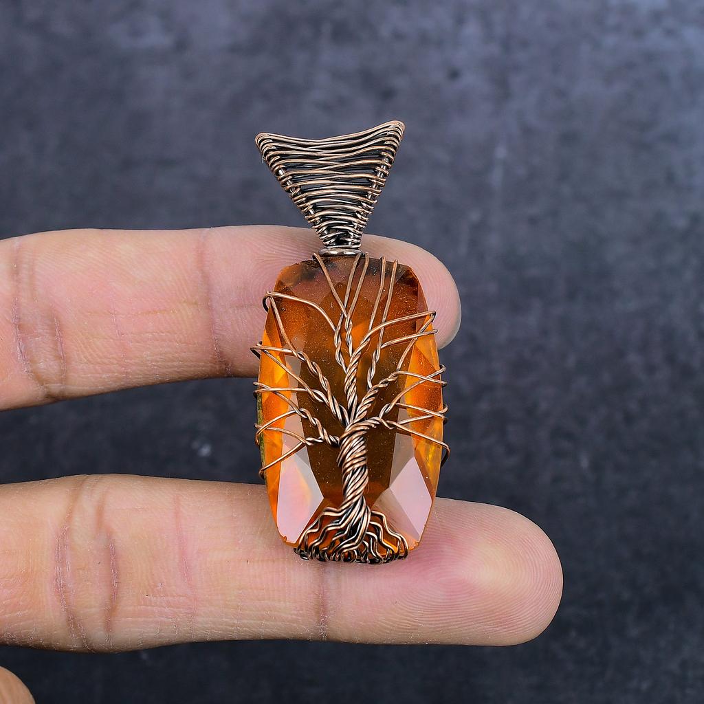 Подвеска из натурального цитрина ручной работы из медной проволоки 2,17 дюйма Q1b89
