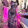 Сексуальное нижнее белье Страсть Кружева Длинное платье Соблазнительный Cheongsam Ретро Разрез Вилка Тонкий Пояс для бедер Сексуальная Полая пижама
