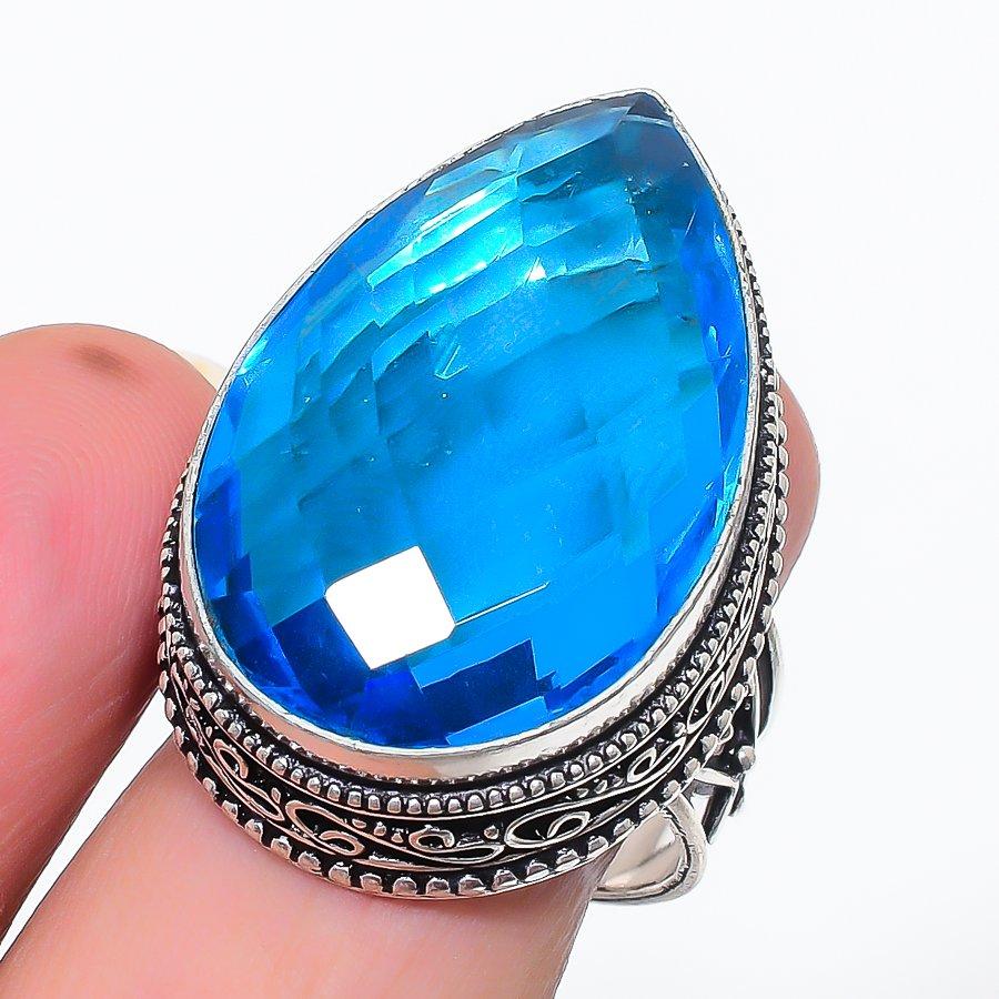 Кольцо из стерлингового серебра 925 пробы с натуральным швейцарским голубым топазом, размер 9 f8Z56