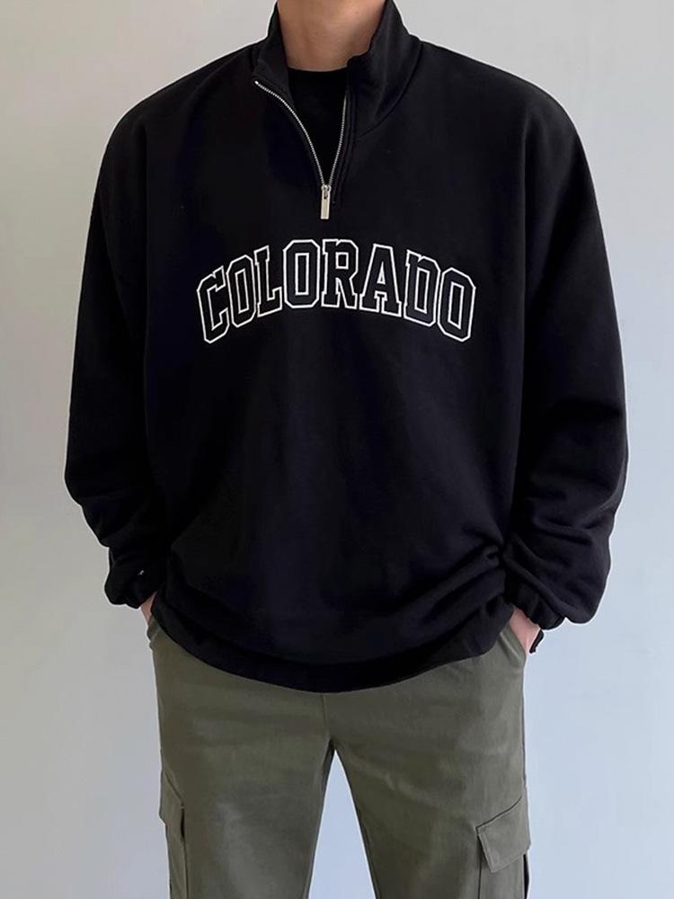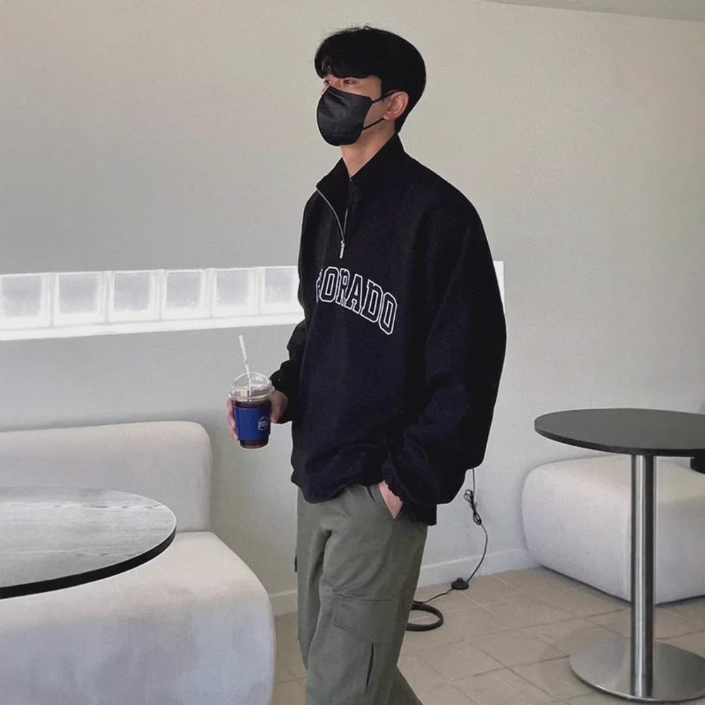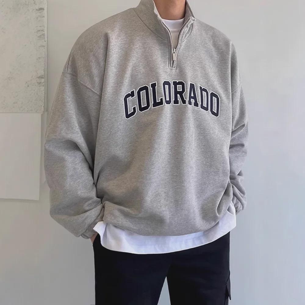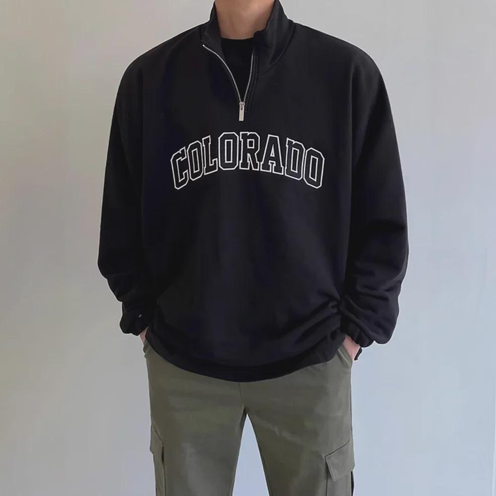 Мужская хлопковая рубашка-поло с длинным рукавом и полуводолазкой на молнии