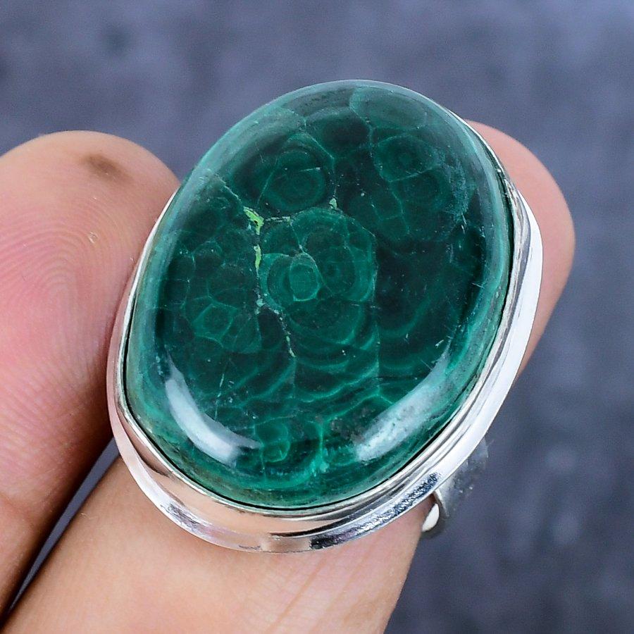 Малахит Драгоценный камень Ручная работа 925 Стерлинговое серебро Ювелирное изделие Кольцо Размер 8 j8h52