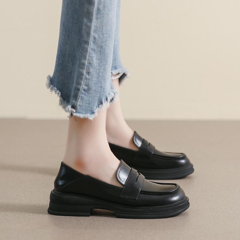 Weiwei girl 523-5 мокасины женские на платформе 2025 новые однопедальные черные туфли JK в стиле ретро маленькие кожаные туфли