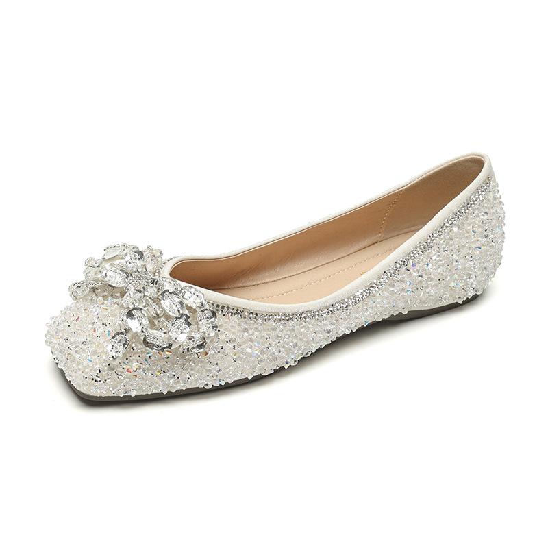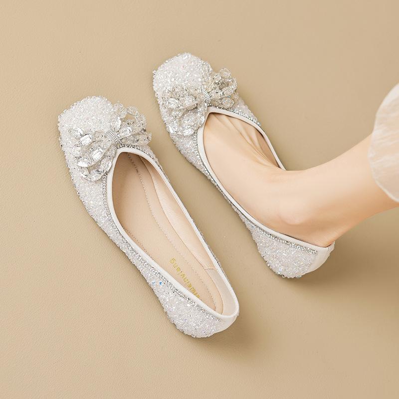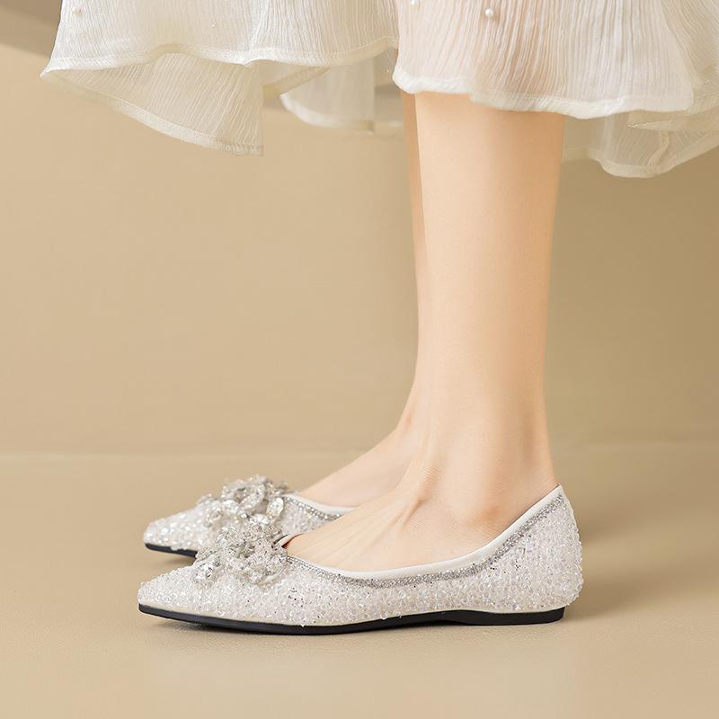 Weiwei Girl 5933-5 Туфли-лодочки со стразами Женские осенние с мелким вырезом Вечерний стиль с бантом Французские нежные туфли Большой размер Женская обувь