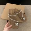 Французские тапочки со стразами на плоской подошве, женские, новинка 2025 года, универсальные, с нескользящим покрытием, с мягкой подошвой, классные тапочки