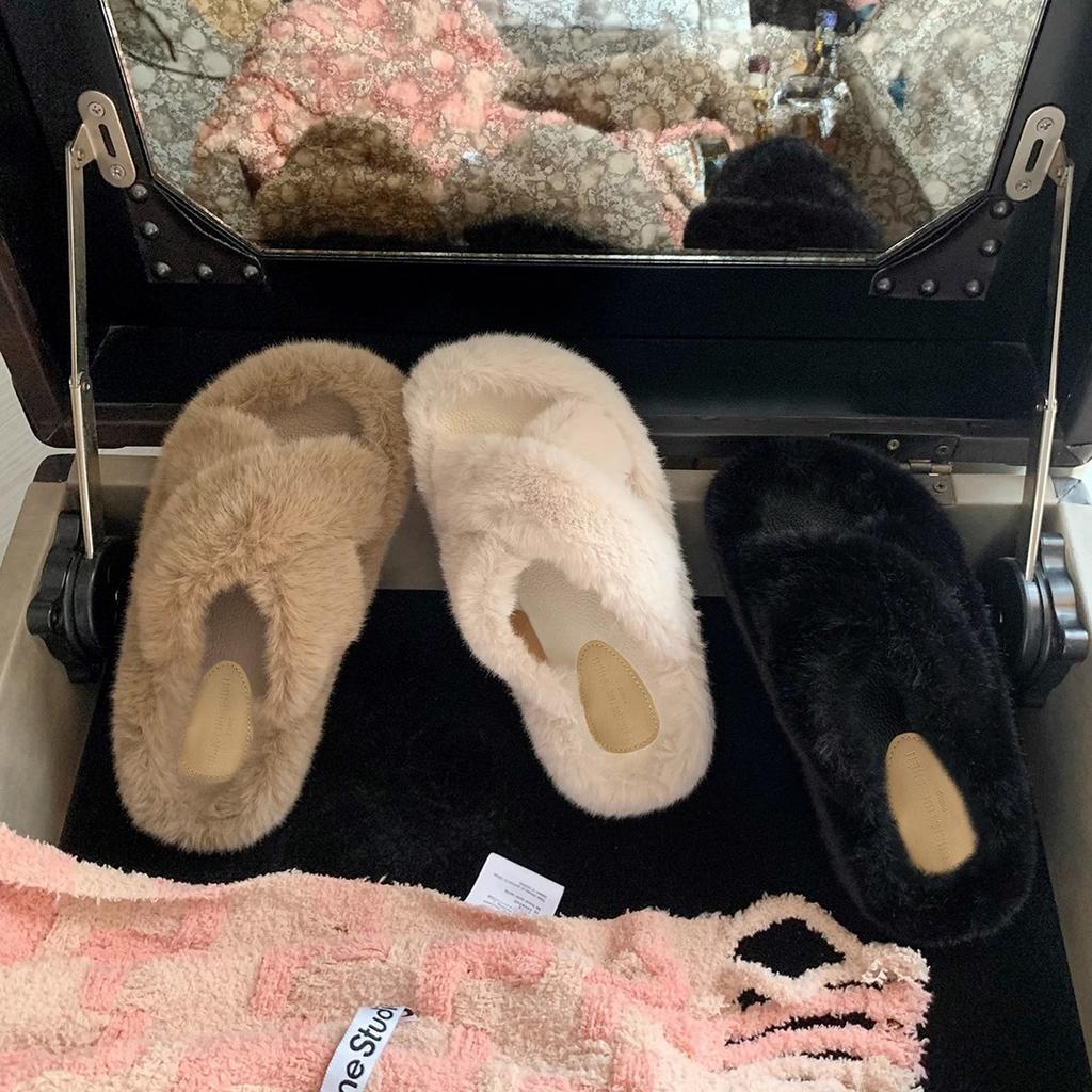 [Sheil Su Yinyin] Мелодия сердца ~ Корейские плюшевые тапочки с толстым дном и перекрестным ремнем, женская осенне-зимняя одежда