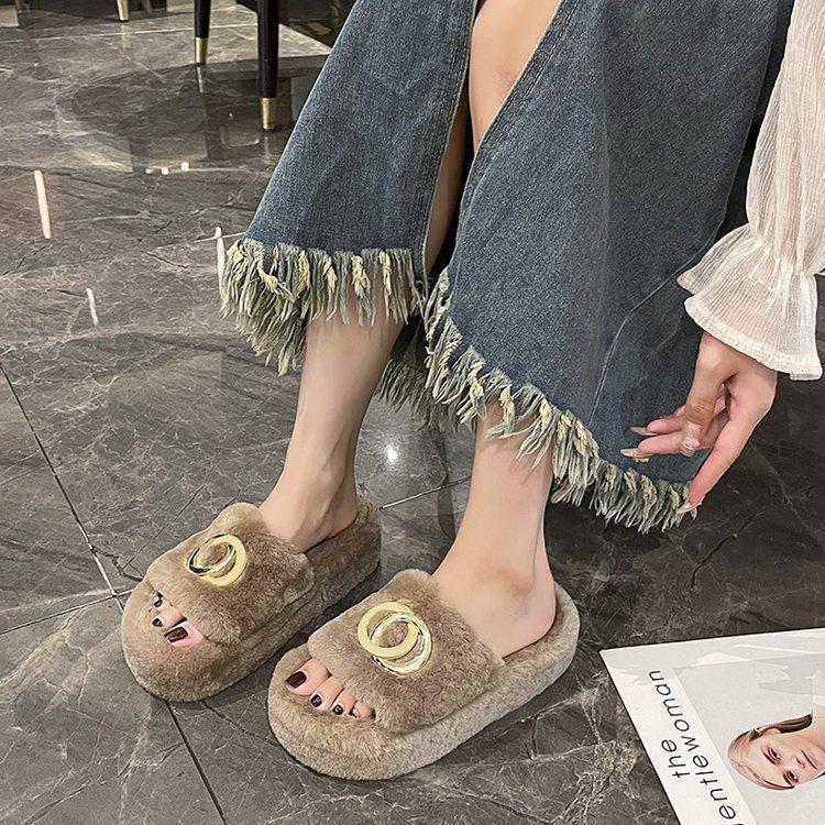 Тапочки Мао Мао женские новые осенне-зимние теплые домашние тапочки с толстой подошвой Тапочки Мао Мао Интернет знаменитости корейская версия домашние плюшевые тапочки