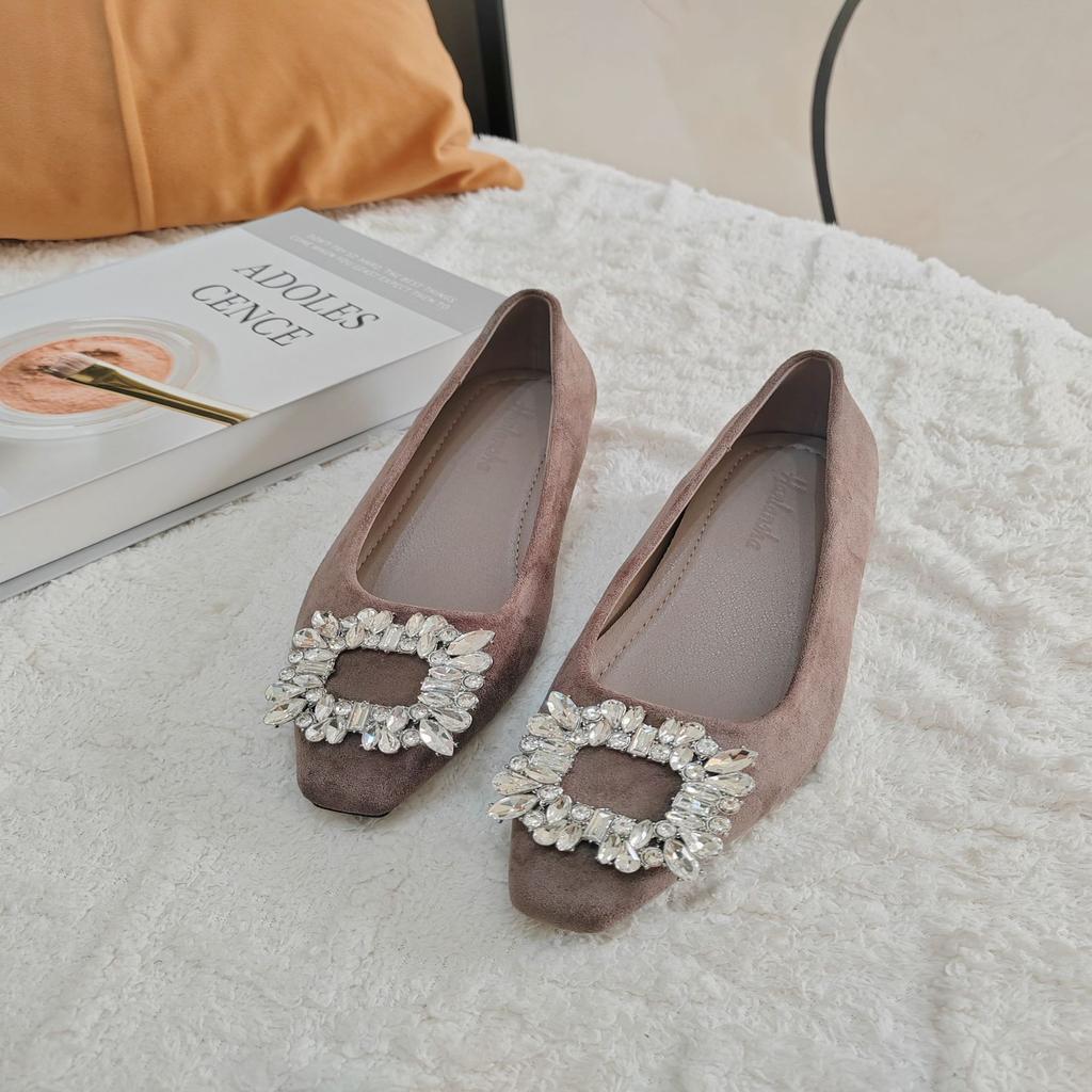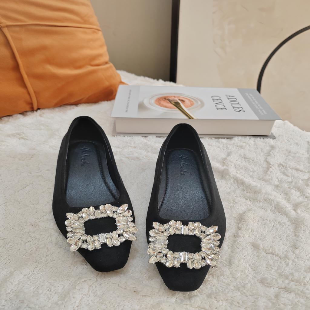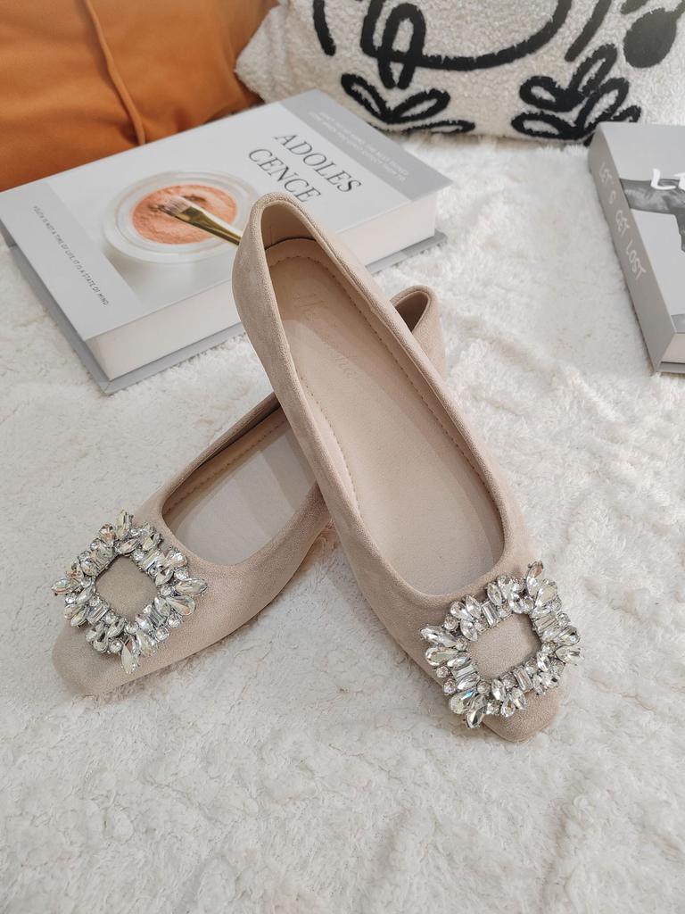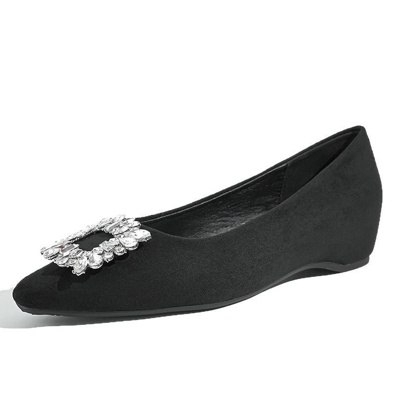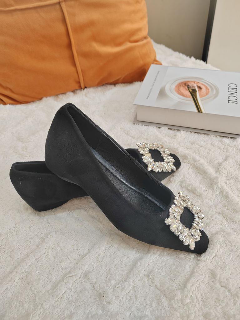 Французские туфли с квадратной пряжкой и крупными стразами, увеличивающие рост, для женщин, лето 2025, новые модные туфли на плоской подошве с тонким каблуком