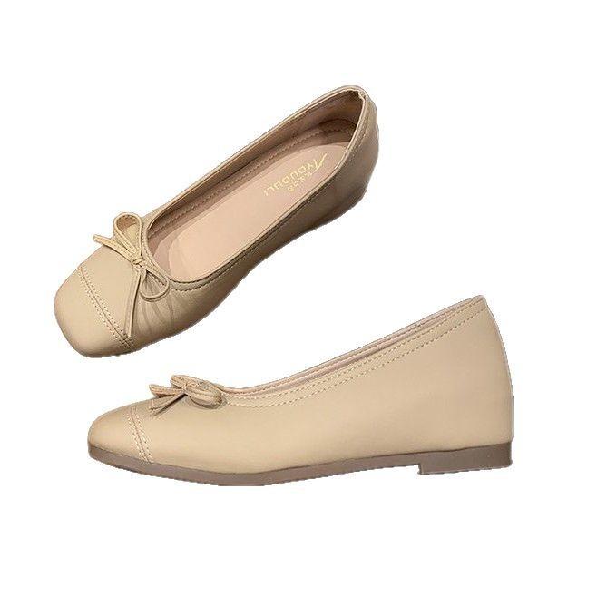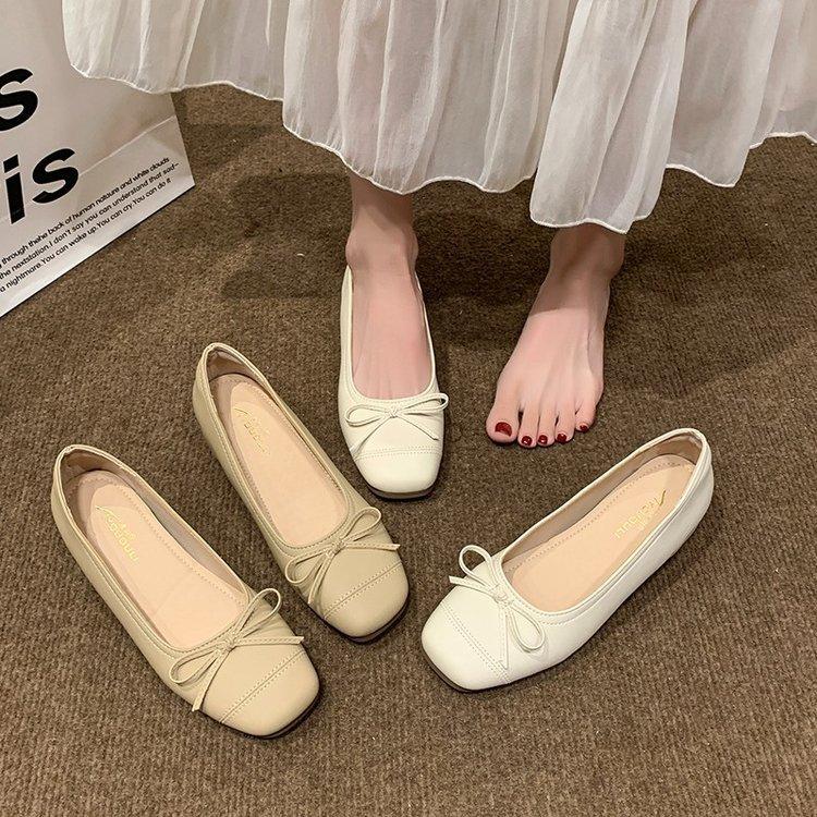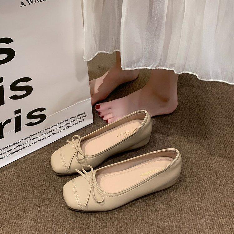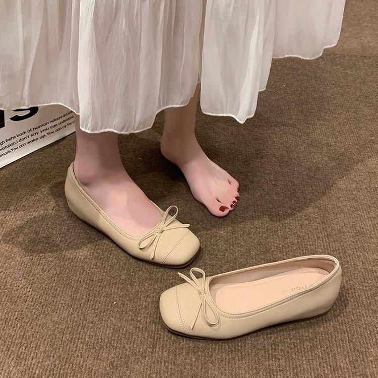 Французский темперамент квадратная голова бант неглубокий носок одинарные туфли женские летние 2025 новые модели с юбками плоские туфли на мягкой подошве женские туфли