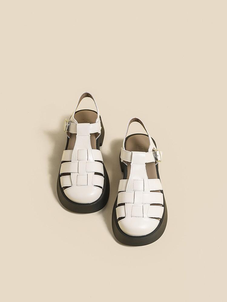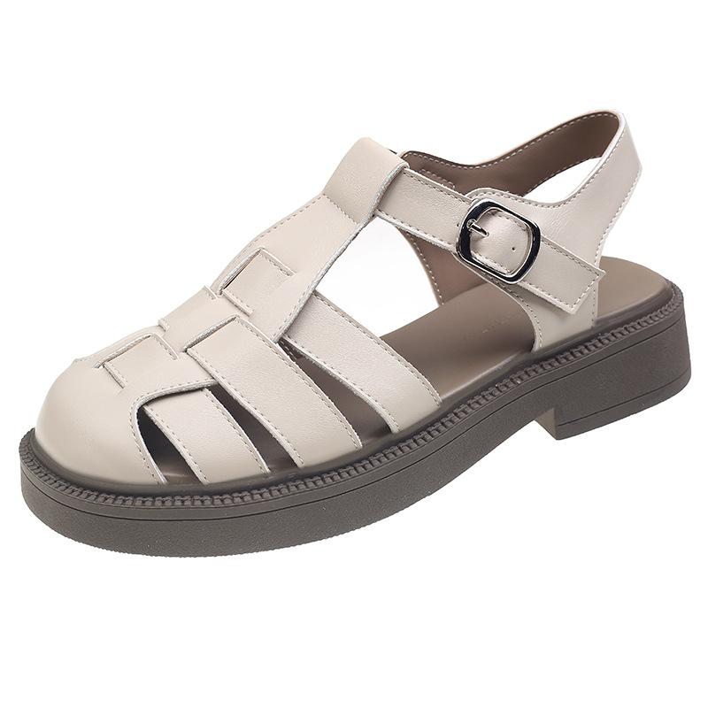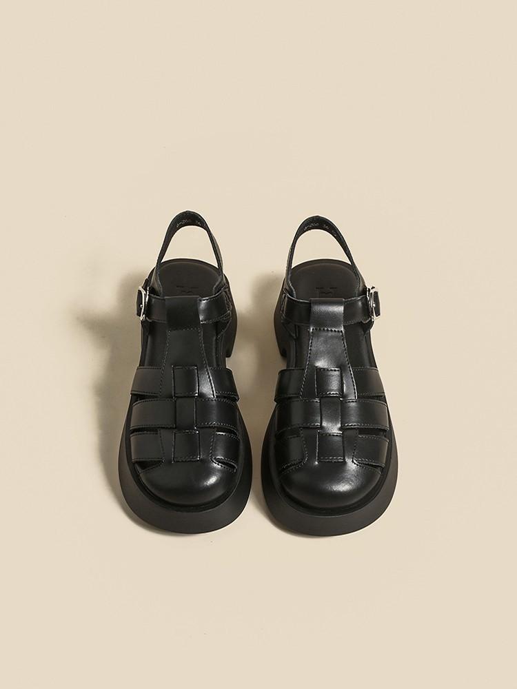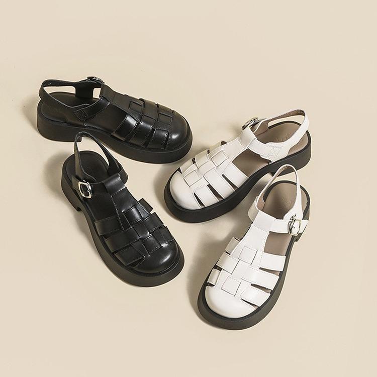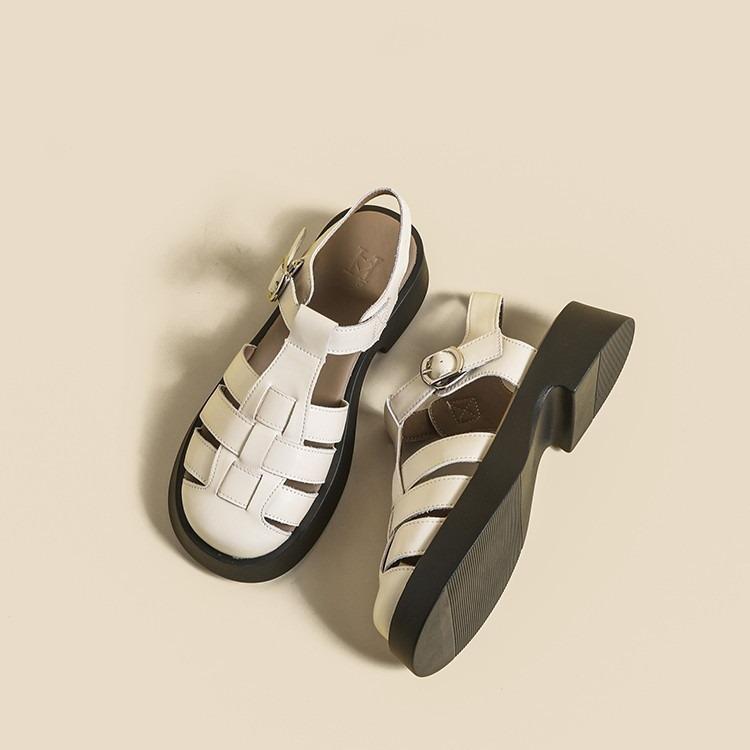 Сандалии на платформе в римском стиле, женские, лето 2025, новые французские ретро-сандалии Baotou с плетеной полой свиной клеткой на толстом каблуке