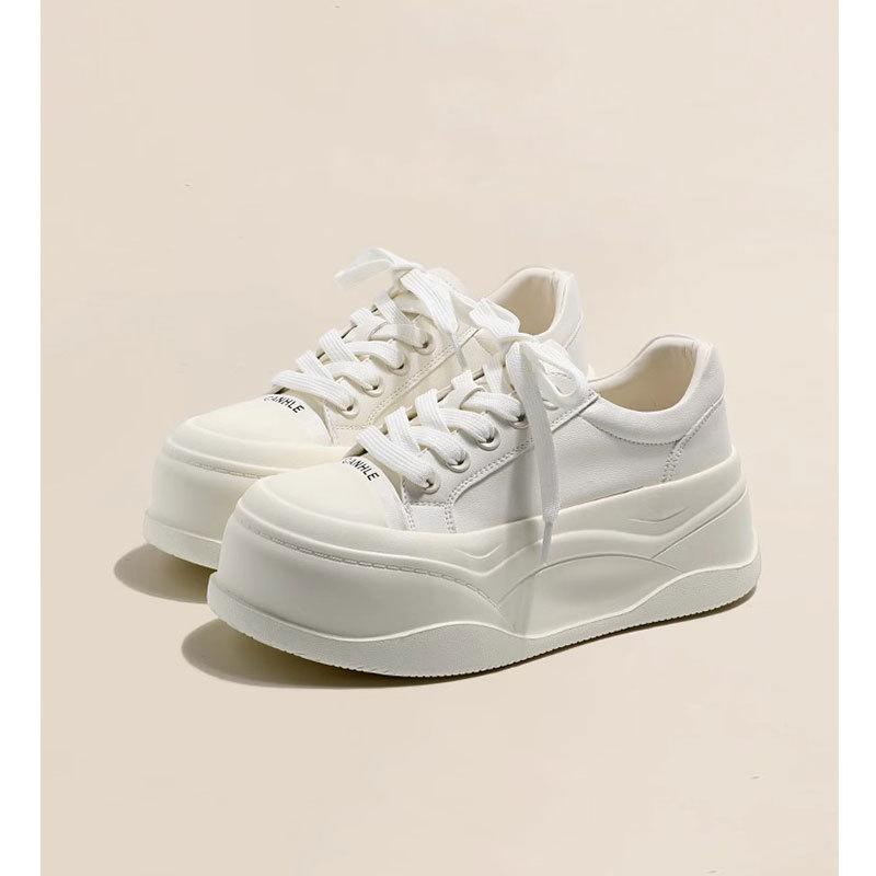 Кожаная платформа белые туфли женские увеличивающие рост кеды 2025 весна и лето новые универсальные мягкая подошва повседневные спортивные женские туфли