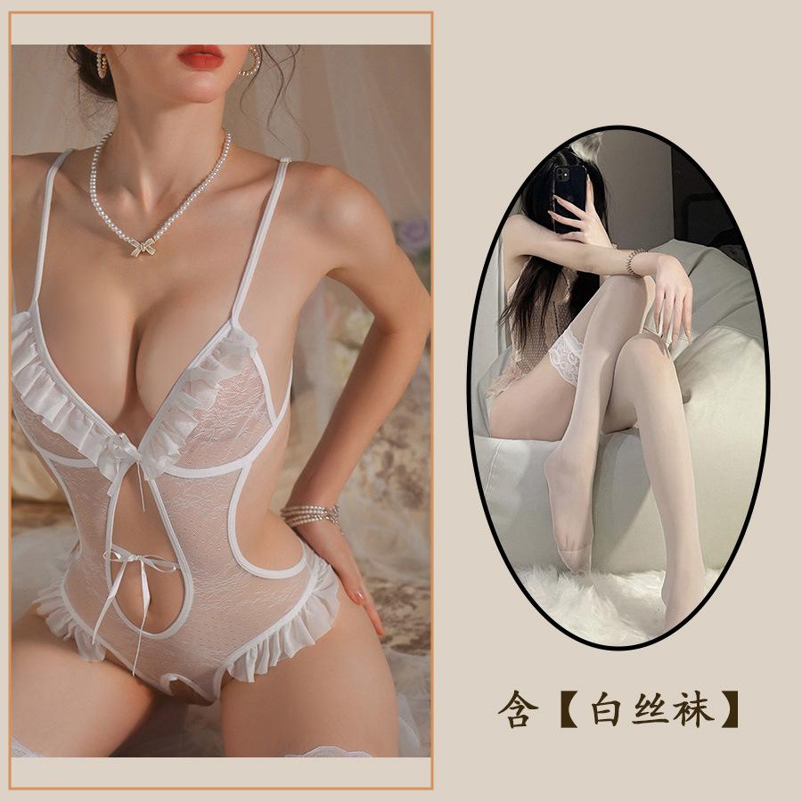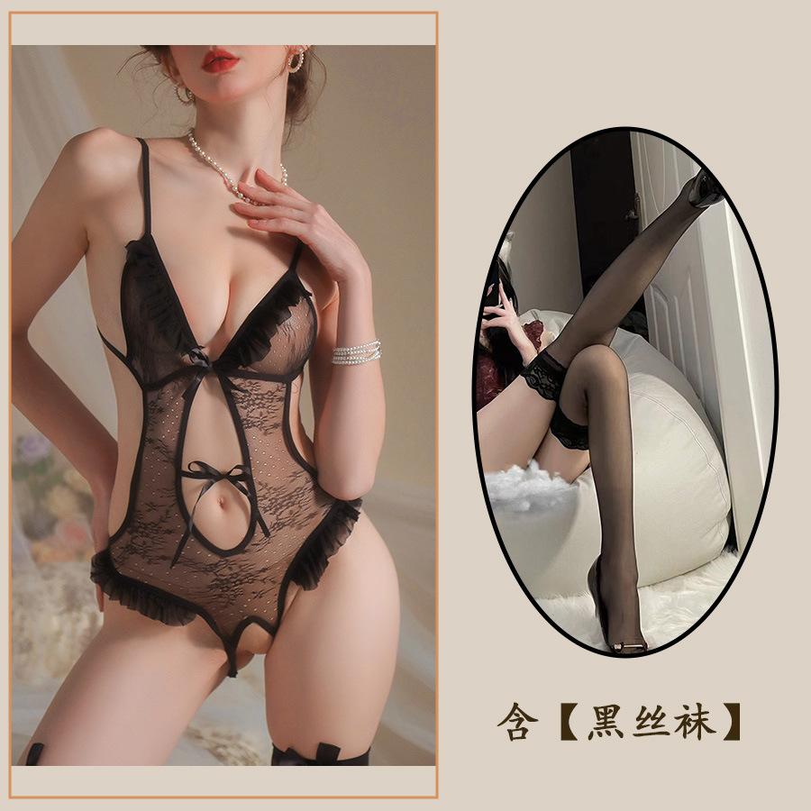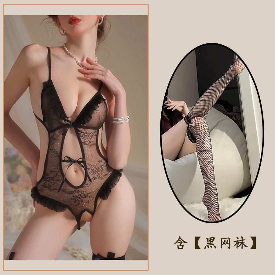 Сексуальное нижнее белье Сексуальный открытый промежность Комбинезон женский горячий подтяжки кружево соблазнение кровать быстрая атака маленькая грудь униформа