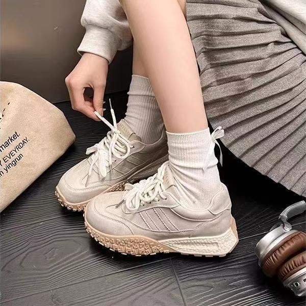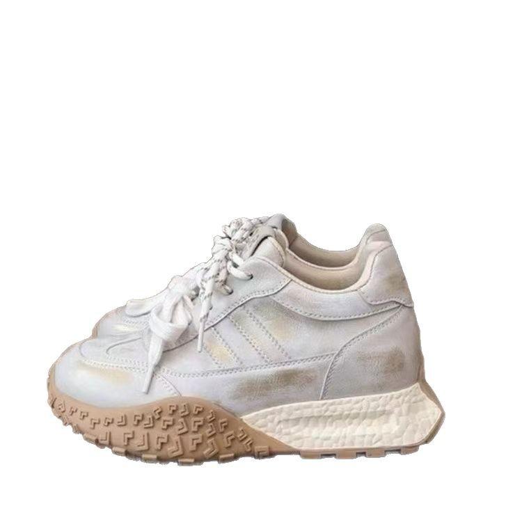 Маленькие белые туфли с толстой подошвой, увеличивающие рост, для женщин и невысоких мужчин, весна 2025, новые ретро-цветные, легкие, для тренировок в стиле Форреста Гампа