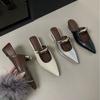 Верхняя одежда 2025 года весна и лето новые ретро классные тапочки женские нишевые высококачественные остроносые тапочки с металлической пряжкой сумка головка танкетка