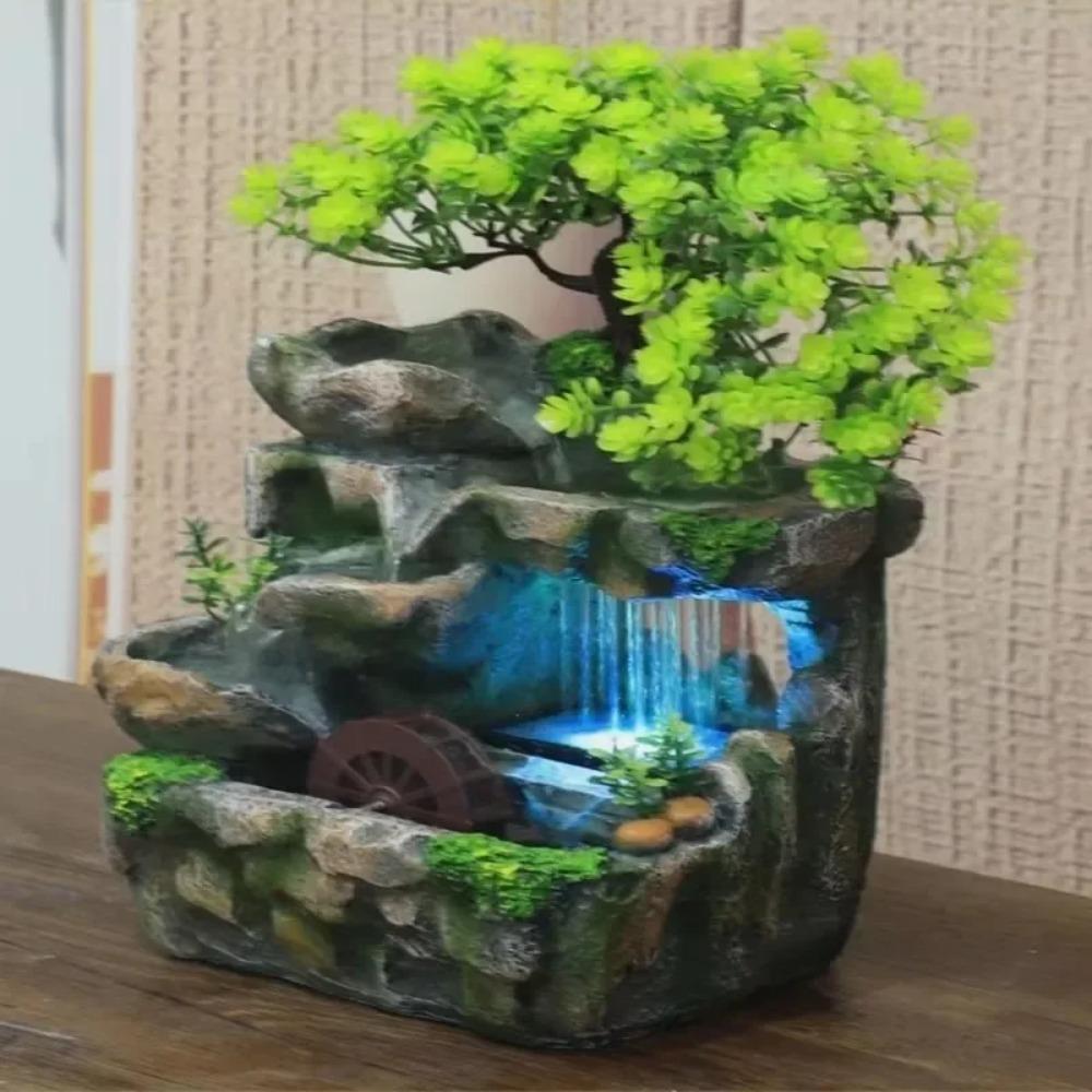 Смоляный фонтан-водопад с рокарием, настольный фонтан в стиле дзен для помещений, декоративный фонтан для медитации, водный элемент, творческое рукоделие, водопад