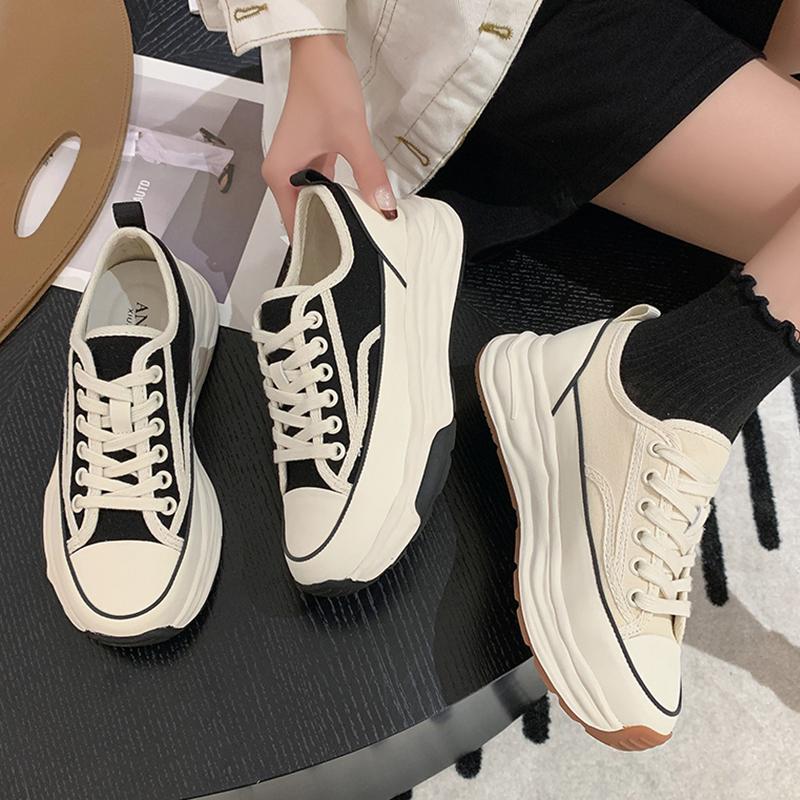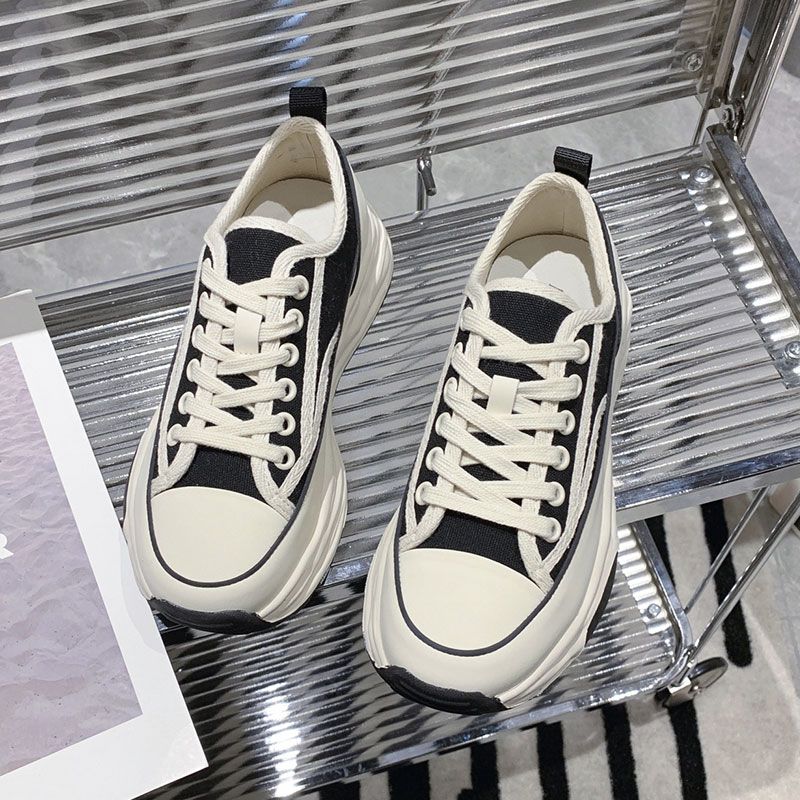 Парусиновые туфли 2025 досуг спортивные весенние туфли на толстой подошве женские туфли новые растворенные белые туфли маффин весеннее увеличение
