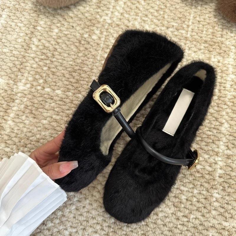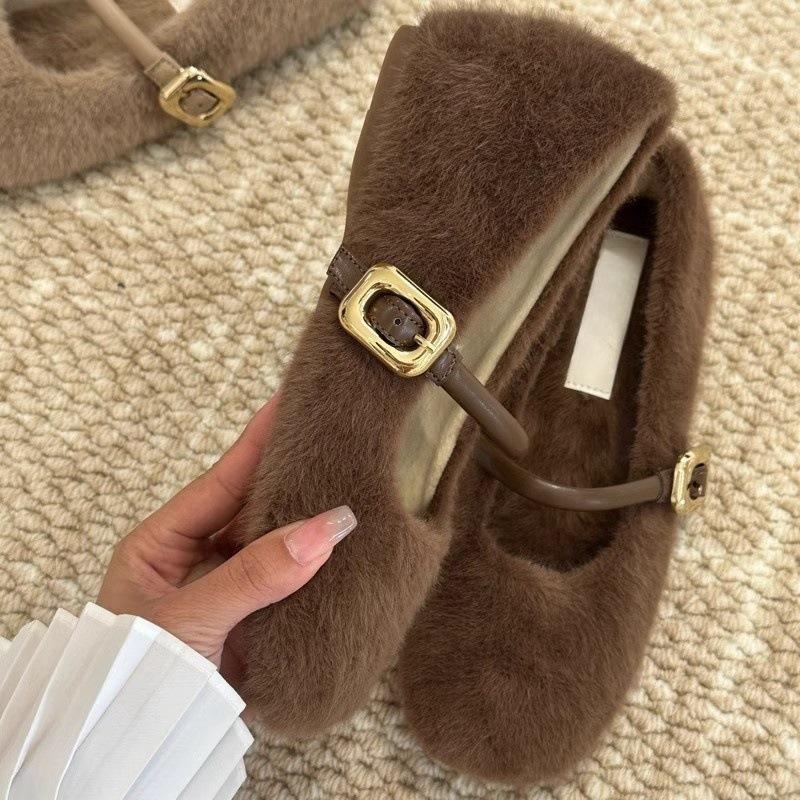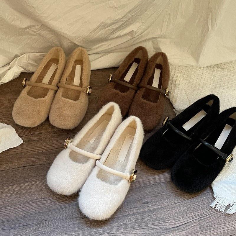 Фея ветер увеличение роста 5 см Мэри Джейн пушистые туфли женские туфли 2024 новые осенне-зимние пушистые одинарные туфли