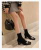 2024 новая корейская версия стразов эластичные тонкие сапоги квадратный нос толстый каблук маленький ароматный ветер высокий каблук короткие сапоги женские весна и осень si