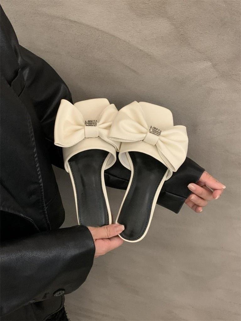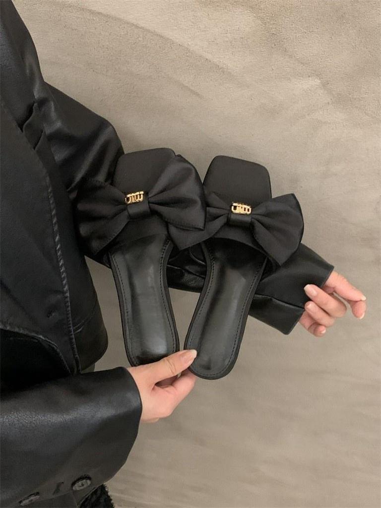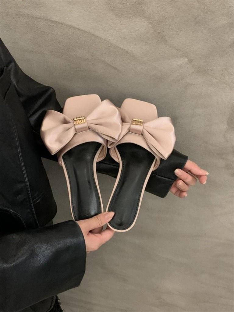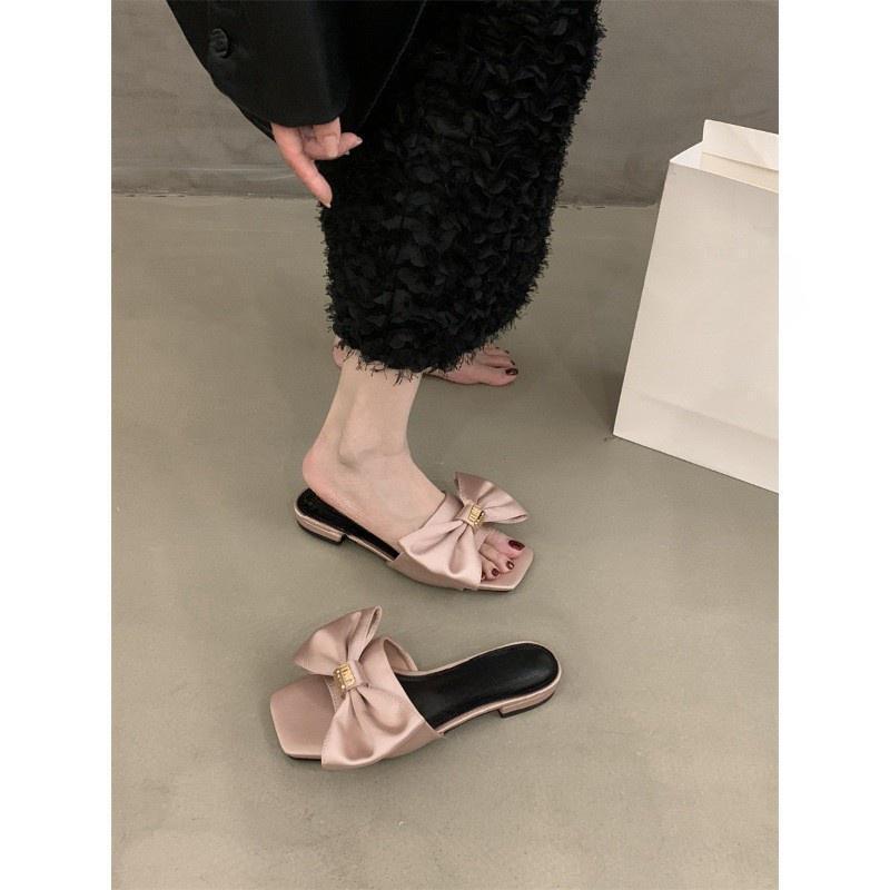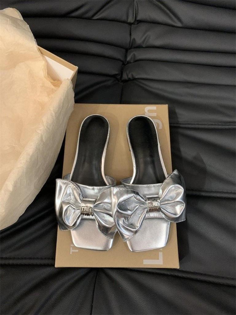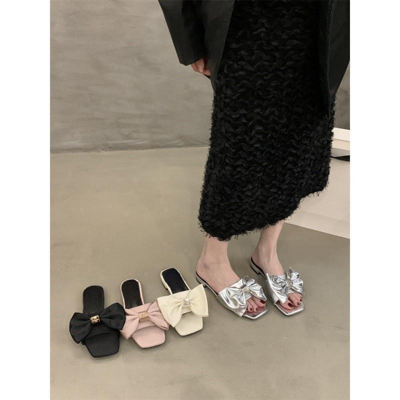 2024 новые туфли-шлепанцы в сказочном стиле на низком каблуке, летние сандалии с серебристым бантом, женская обувь
