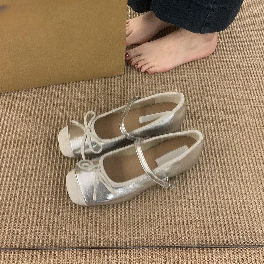 Балетки серебристые с внутренней платформой, женская обувь 2025 новая, французские весенние туфли Мэри Джейн в стиле «маленькая ароматная нежность»