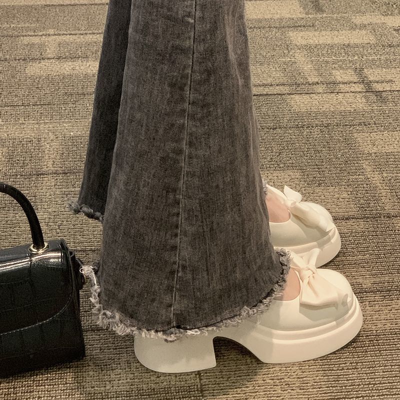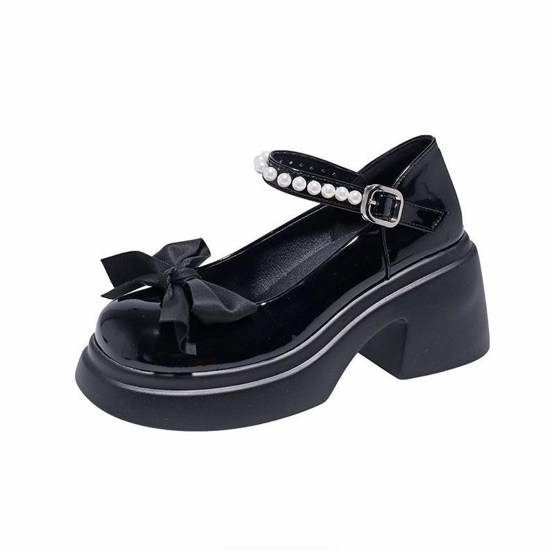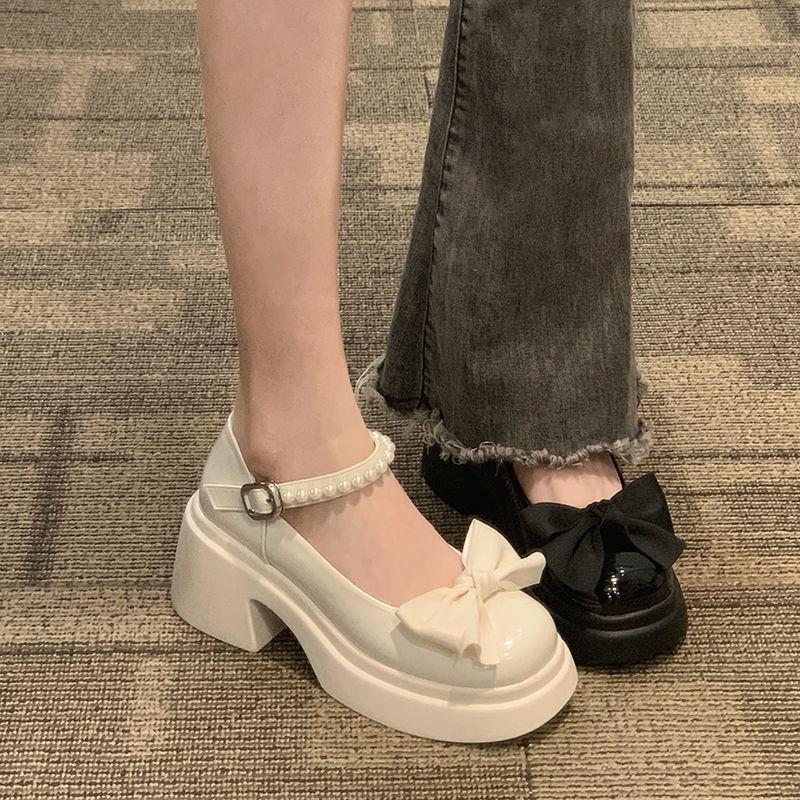 Туфли Мэри Джейн с круглым носком и толстым каблуком, украшением в виде банта, пряжкой в виде одного слова, женские туфли 2025 года, новые модные милые универсальные туфли