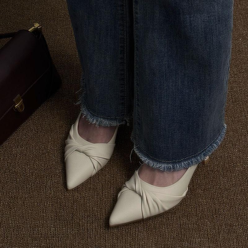 Высокая чувственность верхней одежды иностранного стиля универсальные высокие каблуки 2024 Интернет знаменитости новые острые однотонные мягкие подошвы не устают ноги одиночные туфли женские