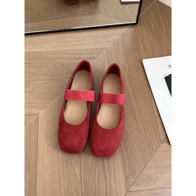 Туфли Мэри Джейн красного цвета на плоской подошве женские туфли весна-осень 2025 летние с юбками балетки вечерние туфли