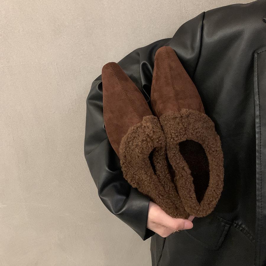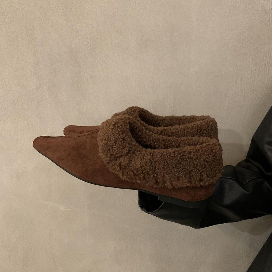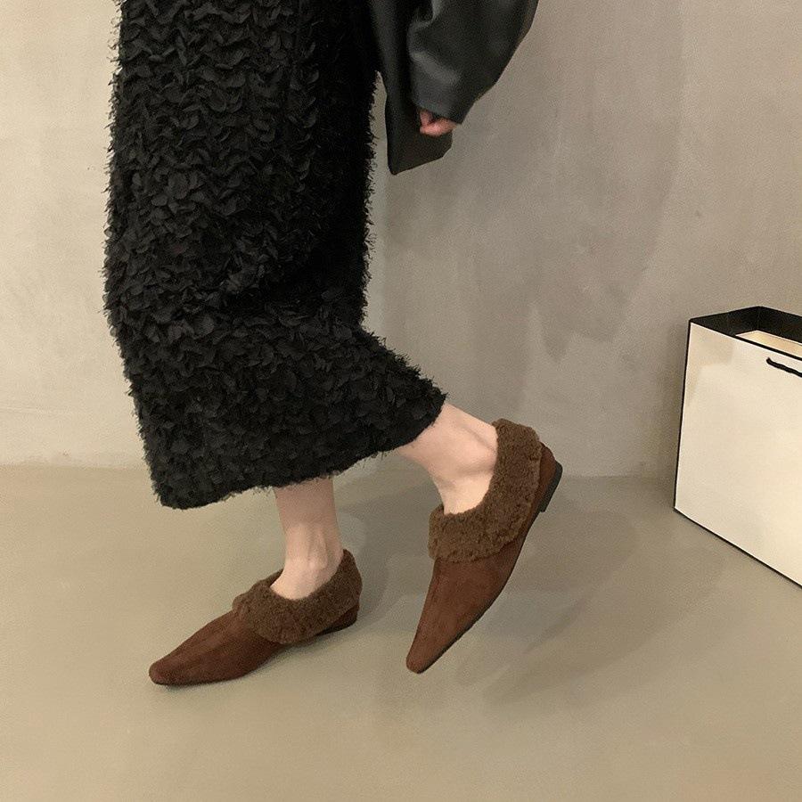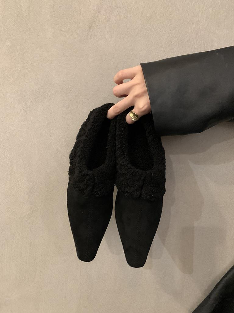 Ретро бархатные теплые одинарные туфли женские осенне-зимние новые модные корейские версии черные универсальные и тонкие пушистые туфли хлопковые одинарные туфли