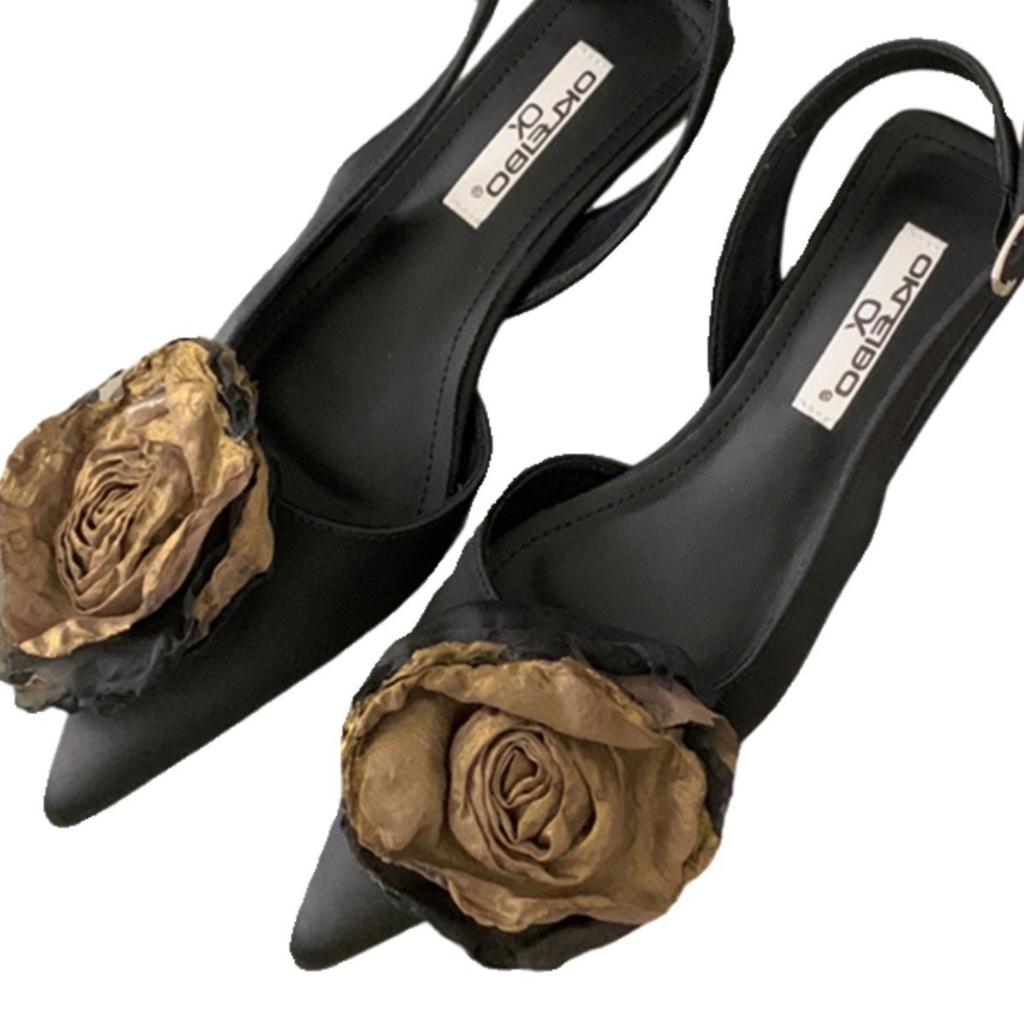 Национальный стиль остроконечные французские босоножки с цветочным принтом и тонким каблуком, туфли-феи 2024 года, новые вечерние туфли для светских львиц, пустые одинарные туфли
