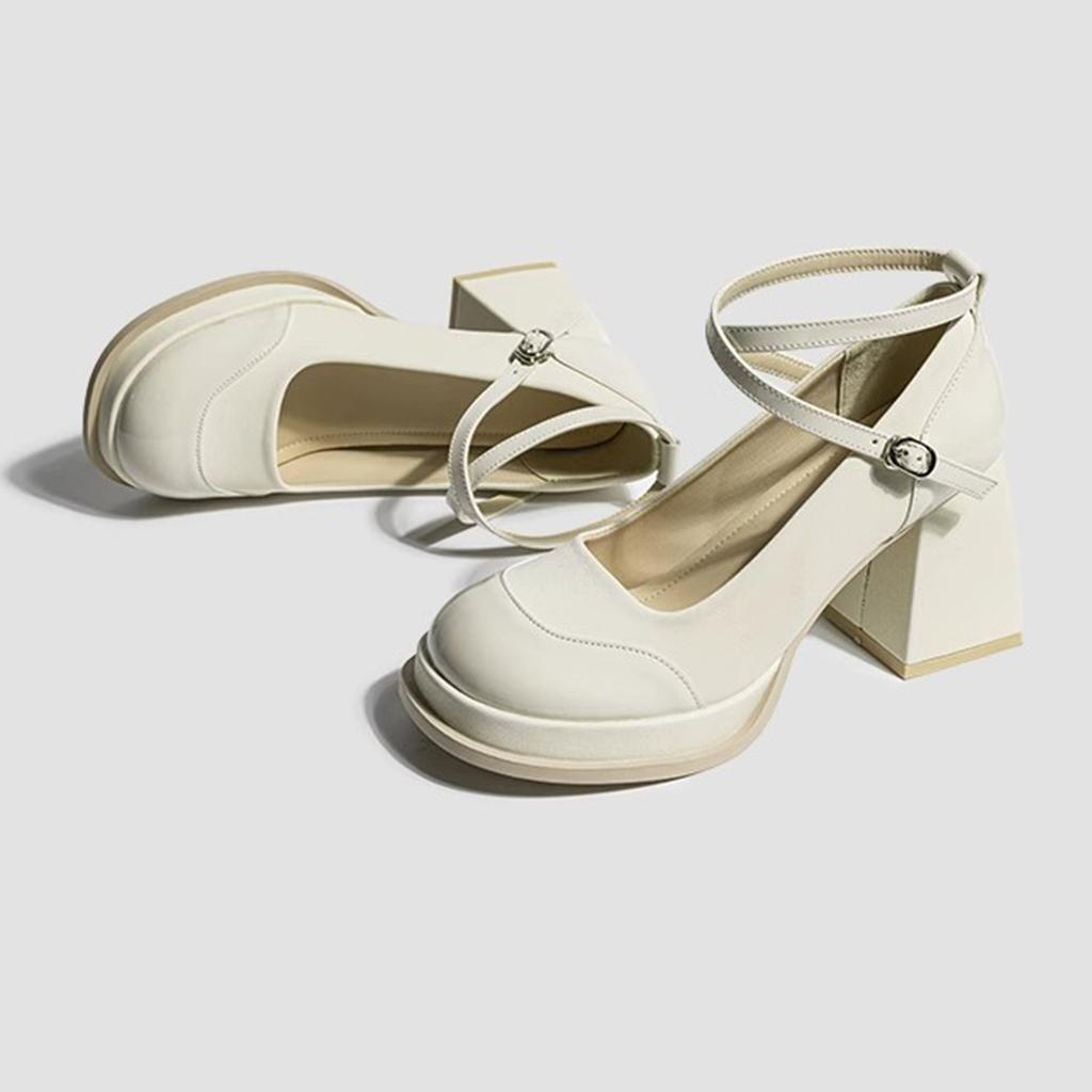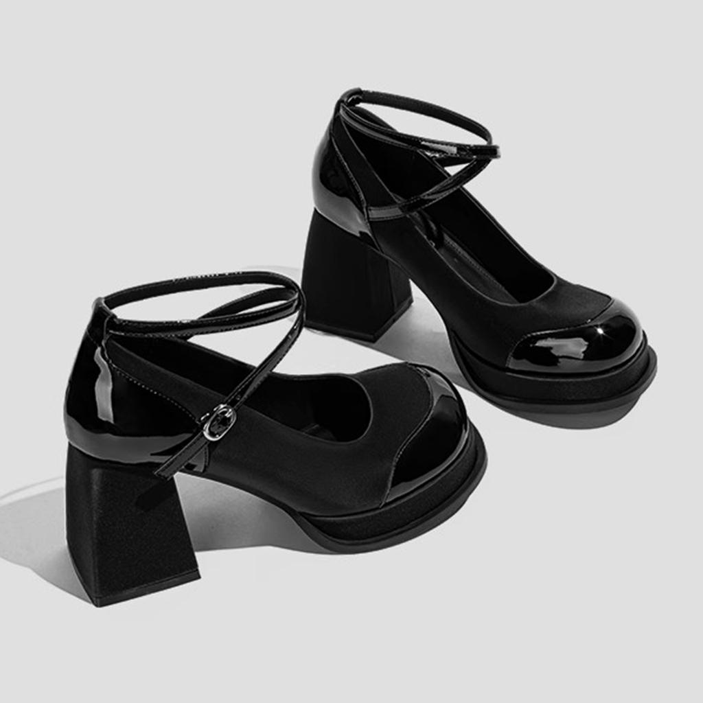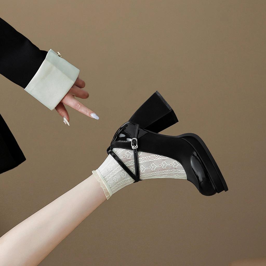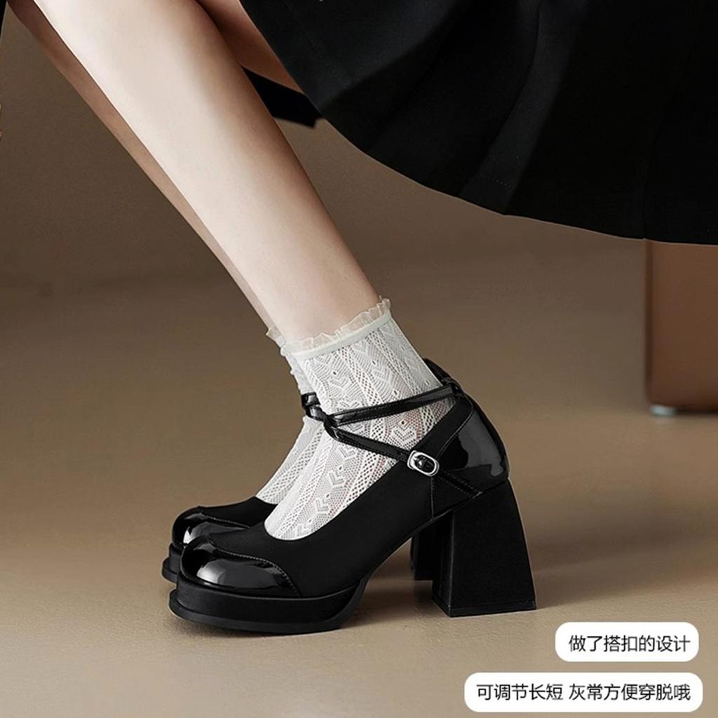 Туфли на высоком толстом каблуке, модные одинарные туфли, женские, 2024, осень, новые, новые, с китайским темпераментом, под юбку, с мелким вырезом, Мэри Джейн, из маленькой кожи